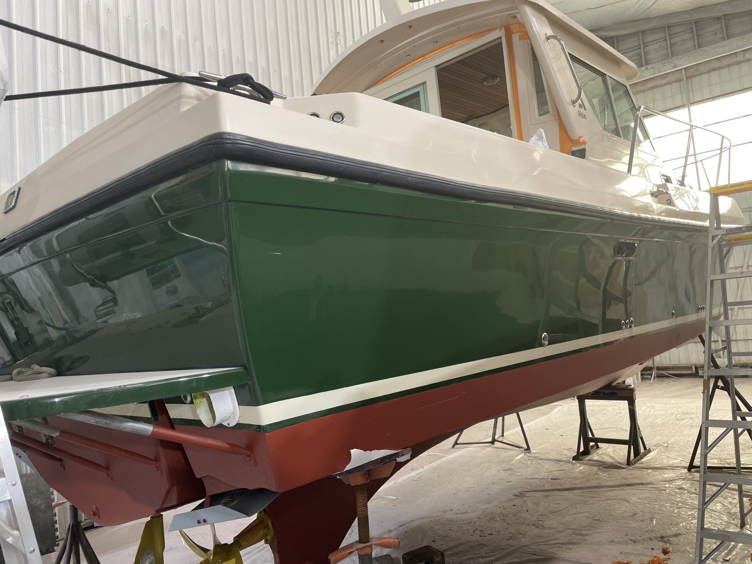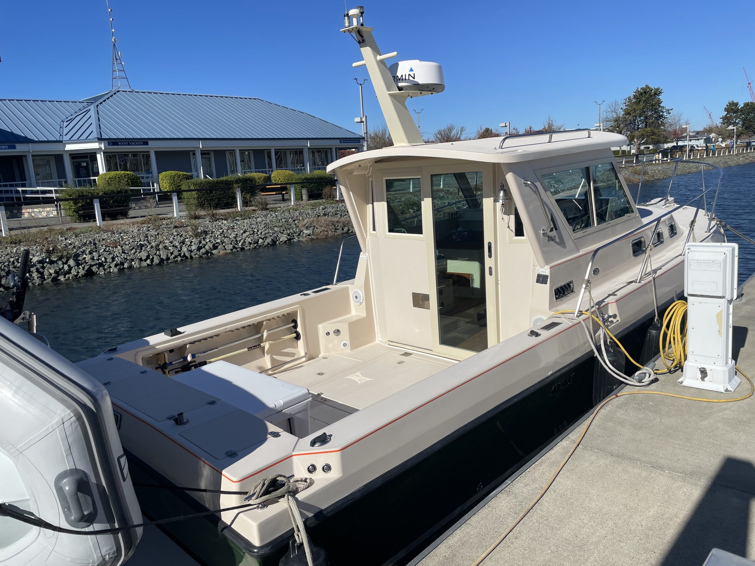 It combines distinctive Downeast styling with a spacious cockpit & comfortable cabin accommodations. The 28 is heavily built on a modified-V hull with a generous 10-foot beam,
