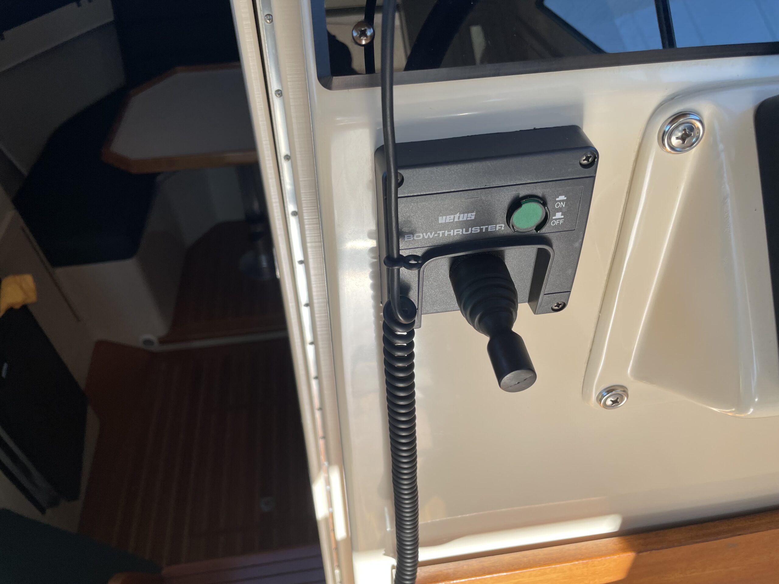cockpit H/C fresh water shower, bow thruster & transom storage boxes.