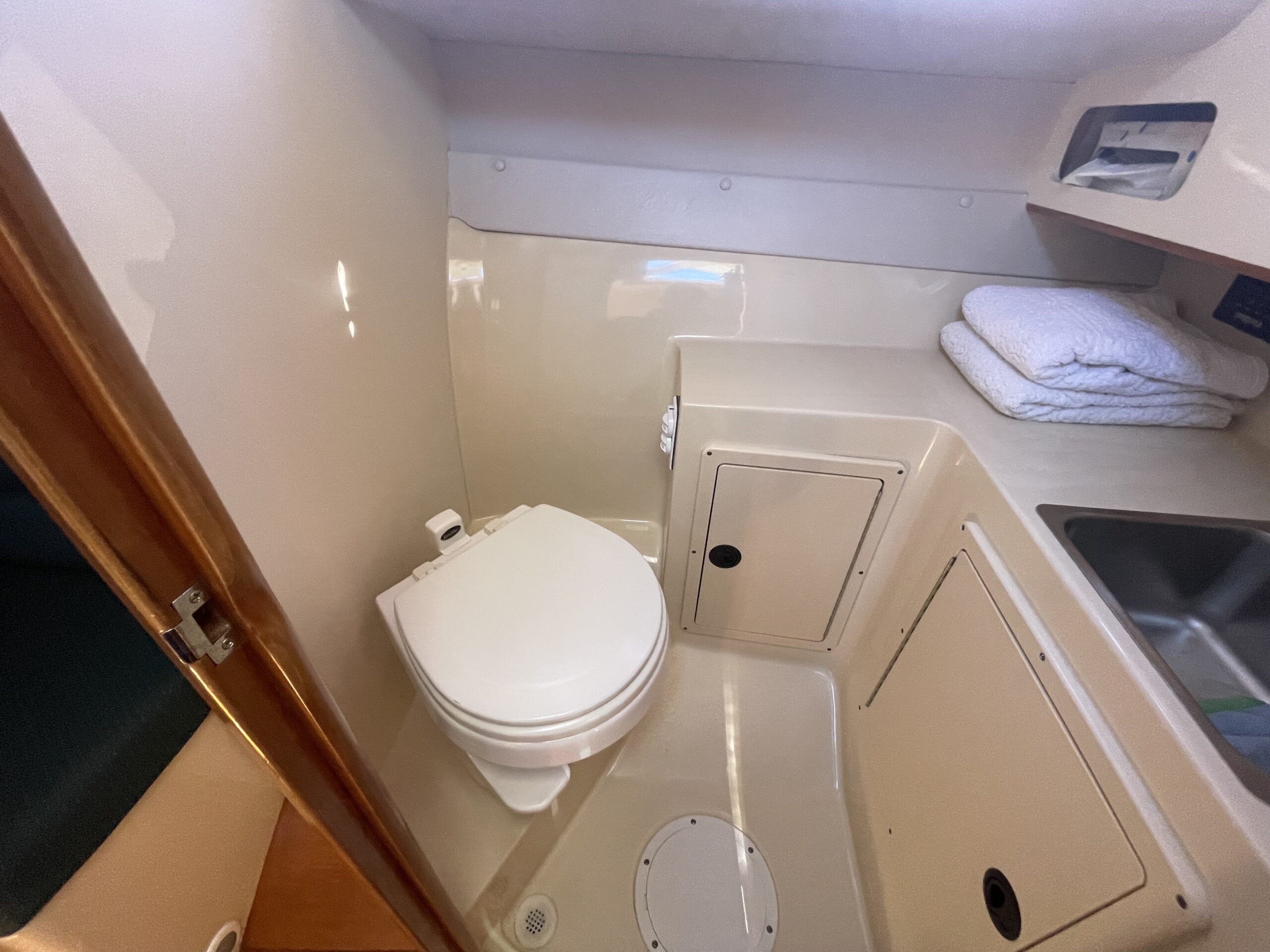 - Plumbed to Holding Tank with Pump-Out Deck Fitting