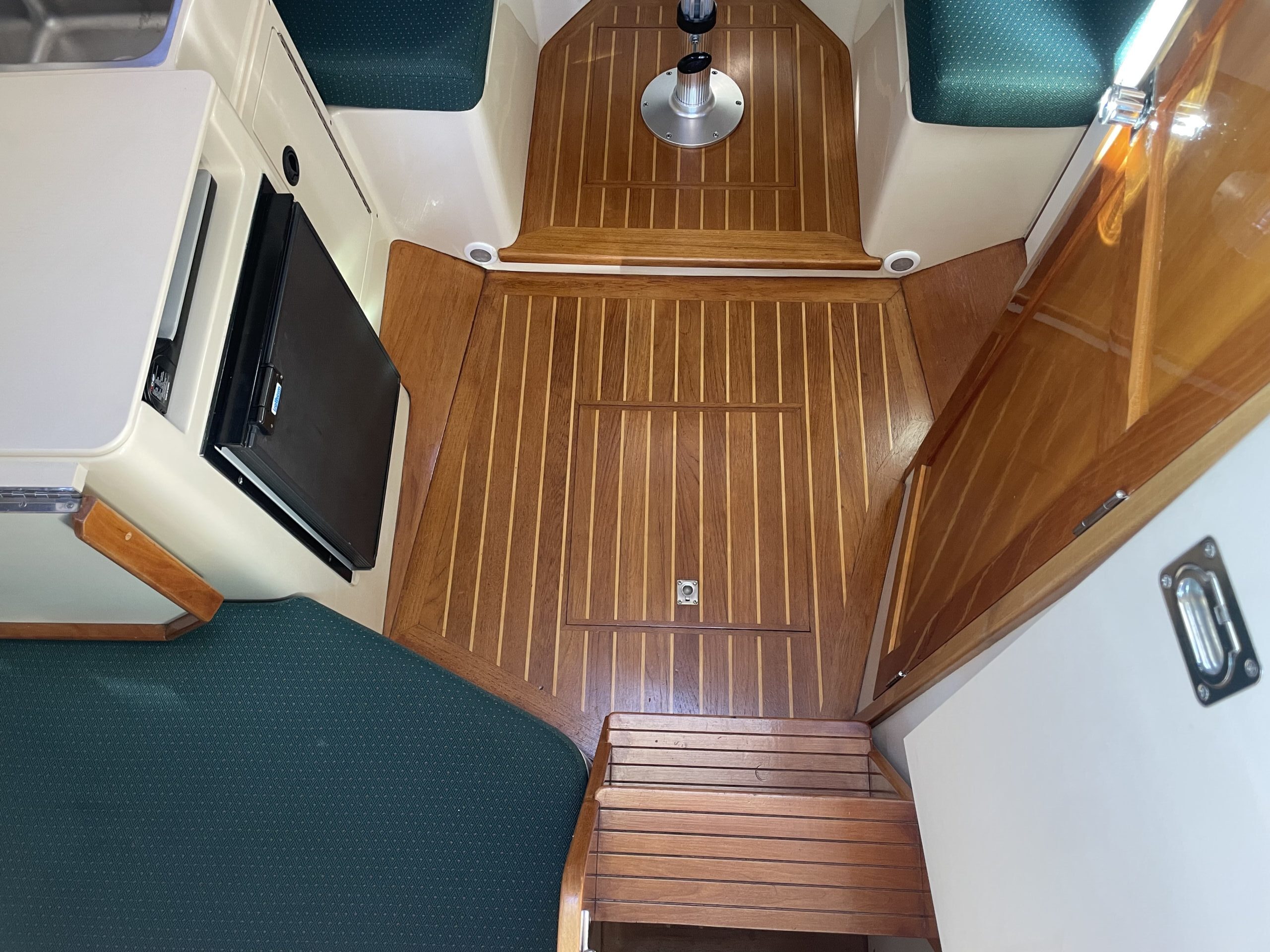Belowdecks, the roomy interior of the 28 TE has the comforts of a larger cruiser with a