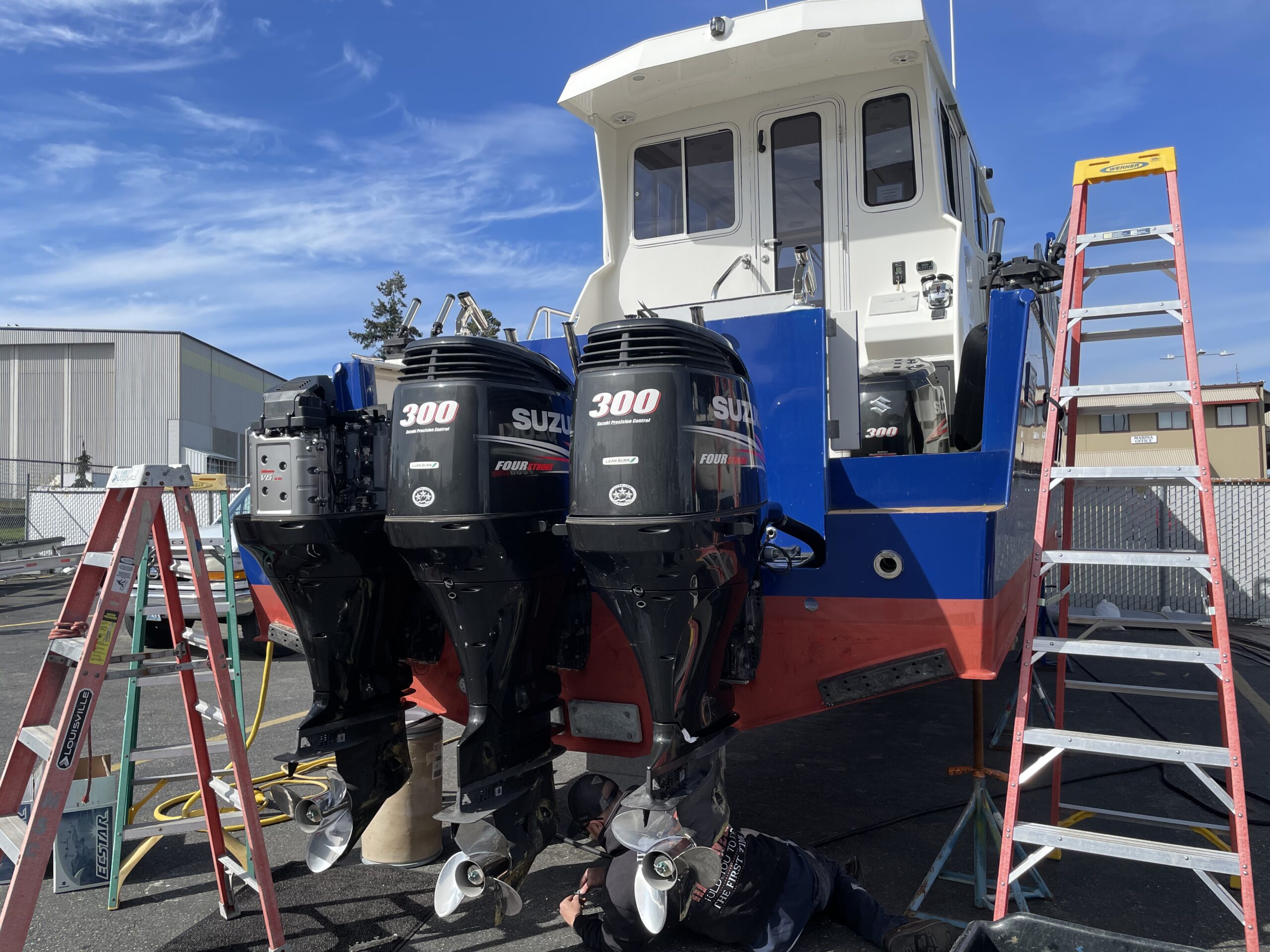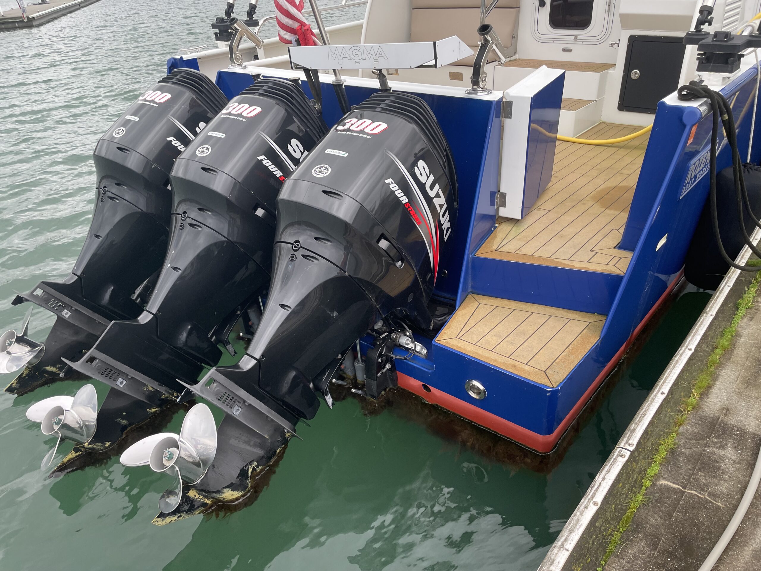 - Engines – Triple Suzuki 300hp @ = 900 Total Horsepower