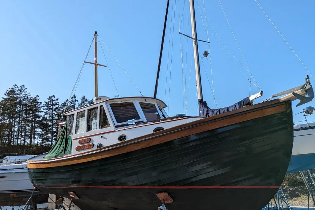 - Hull Material: 1″ Lapstrake Cedar Planking on Steam-Bent Oak Frames with Copper Rivets & Bronze Fastenings