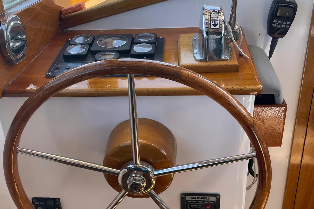 - Teak wheel with stainless rim