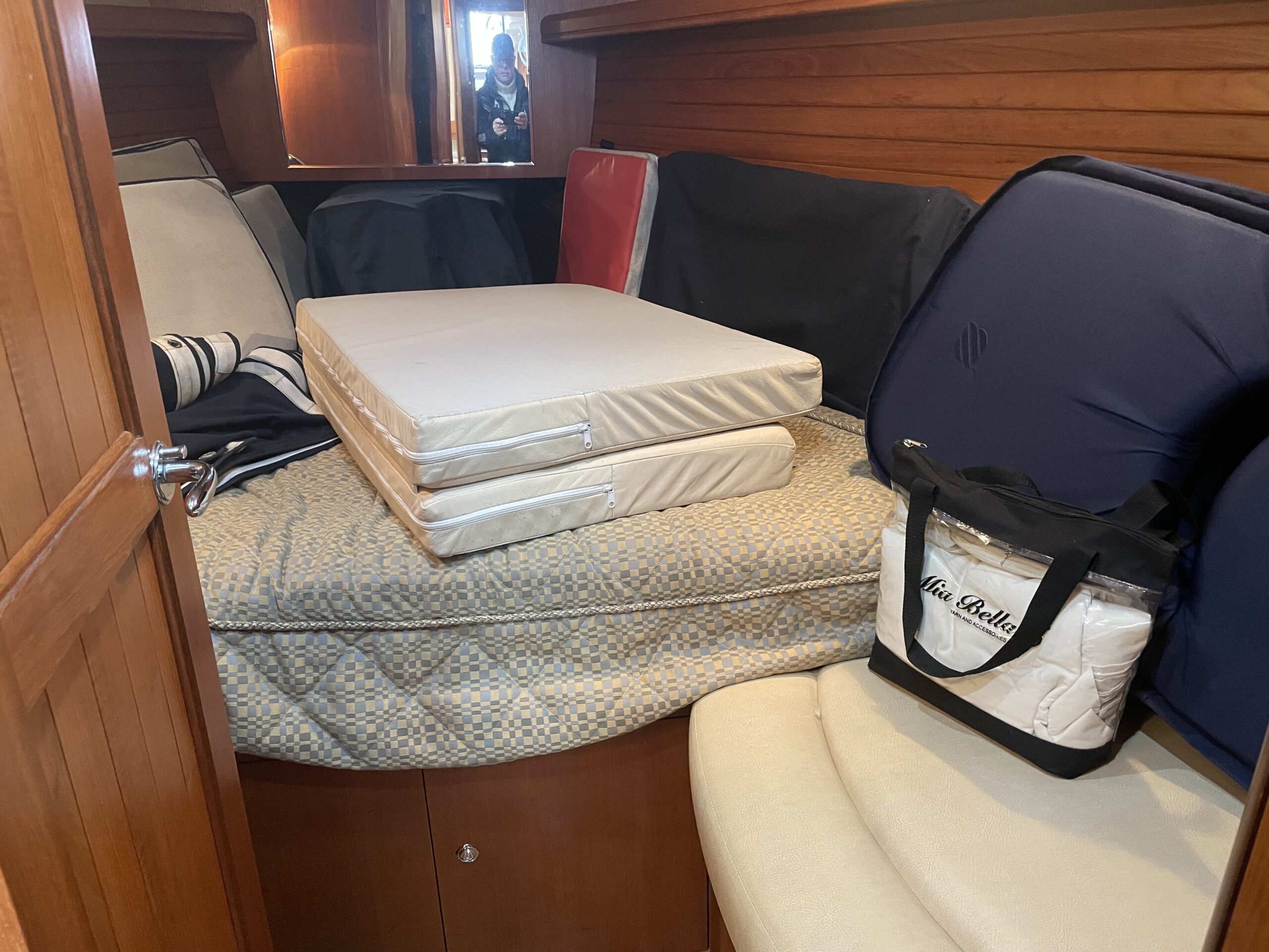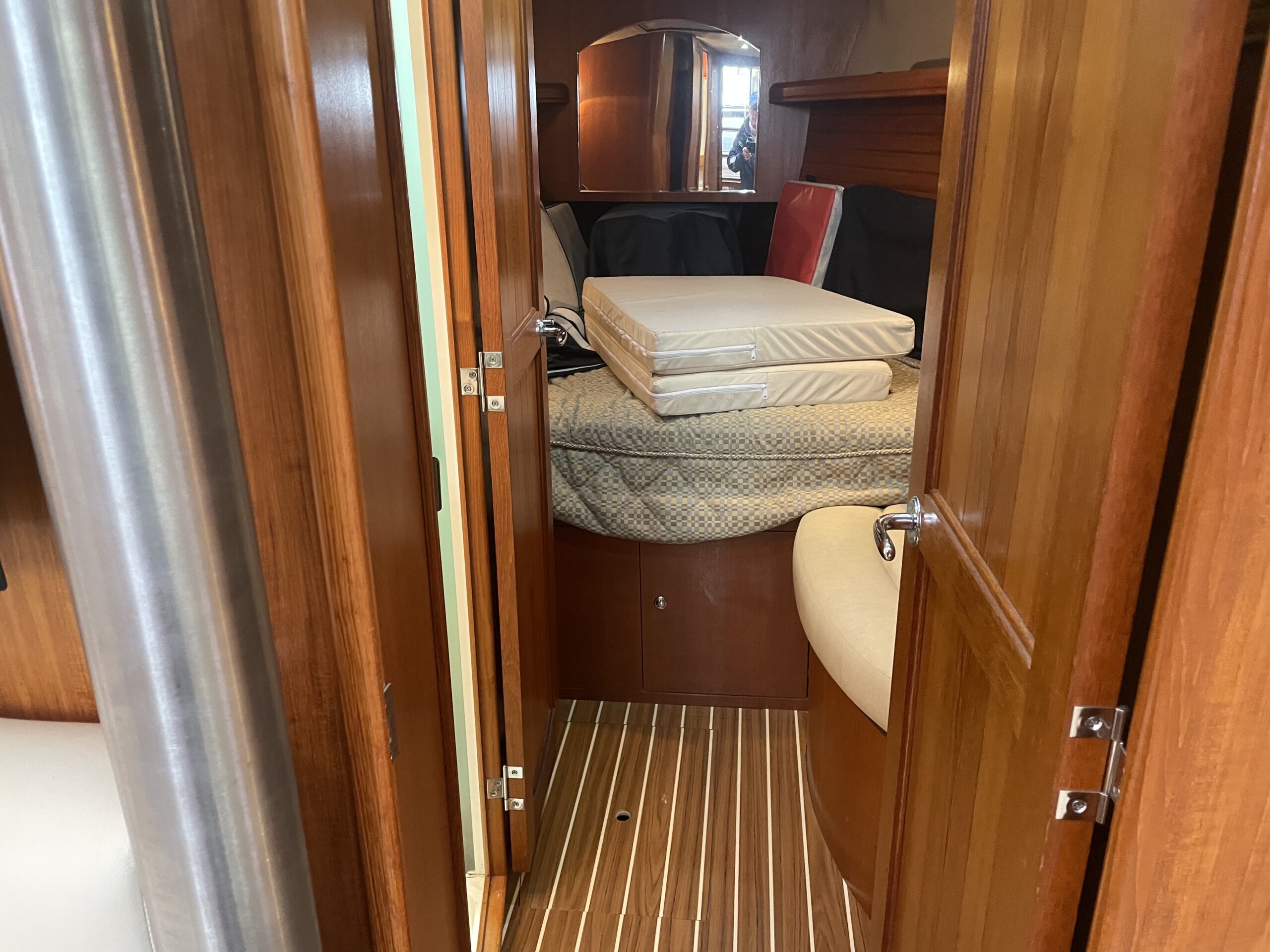 - Layout – Chain Locker / Forward Accommodation with Island Queen Berth, Hanging