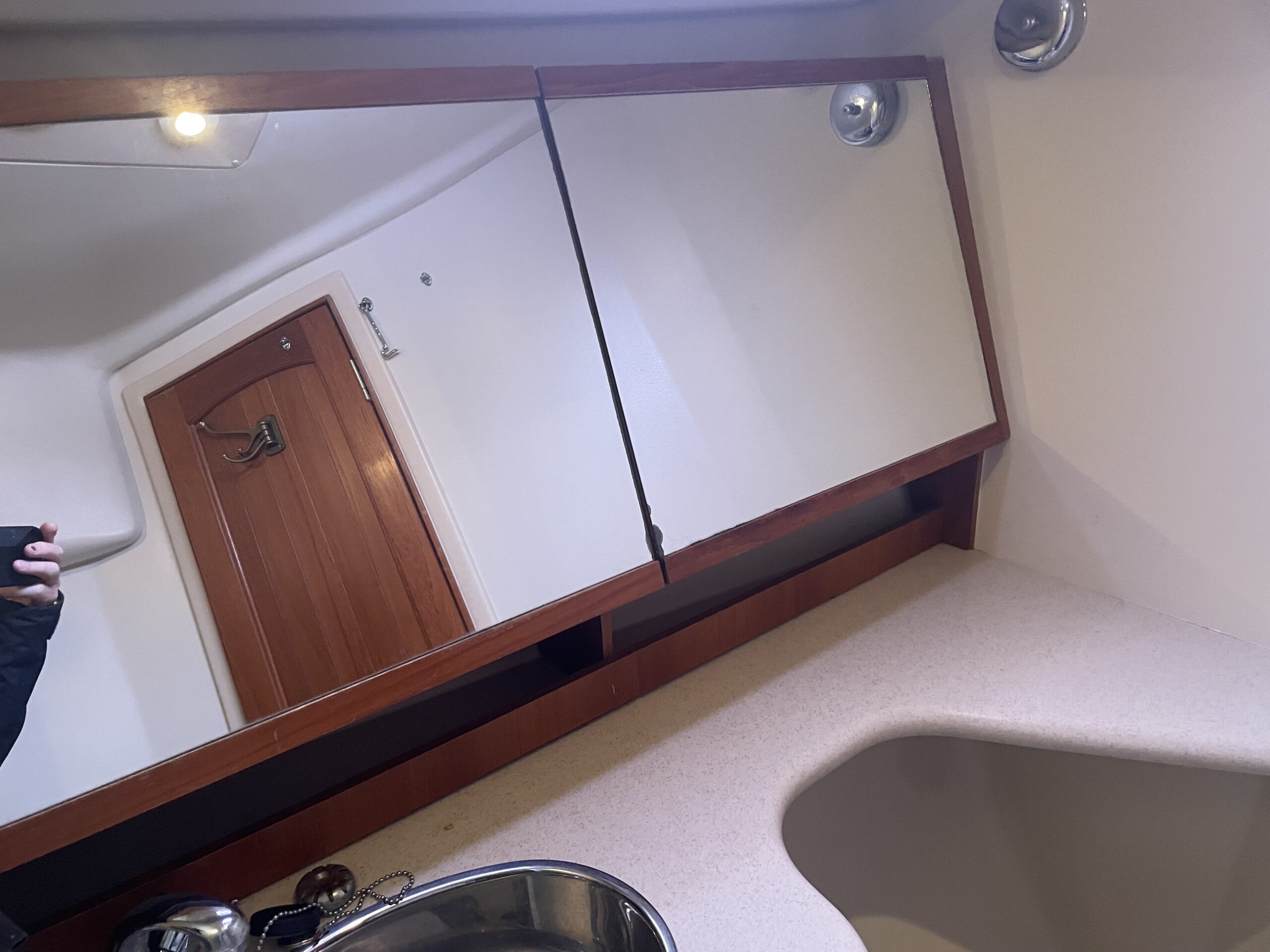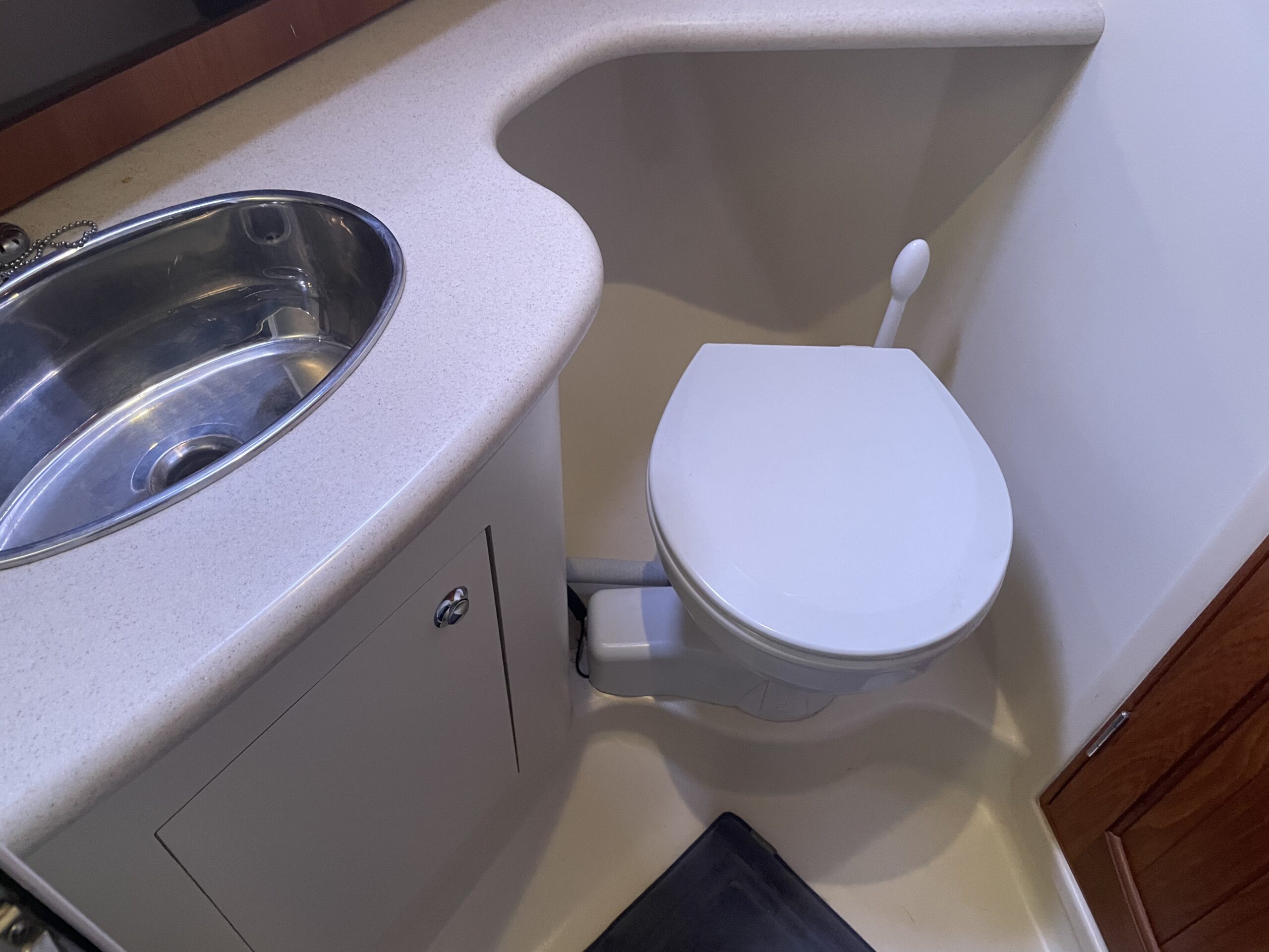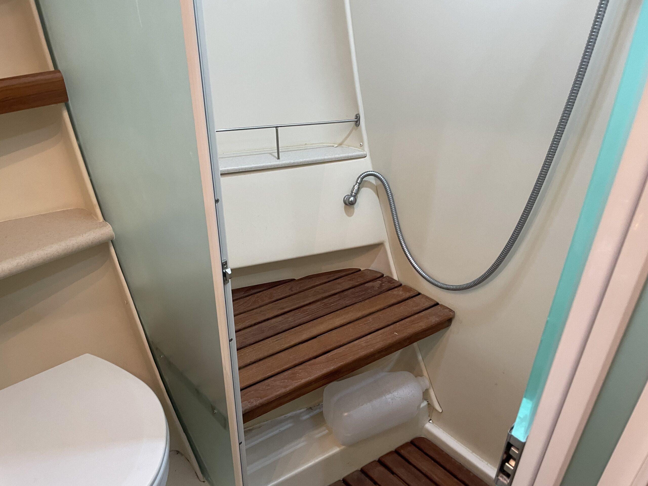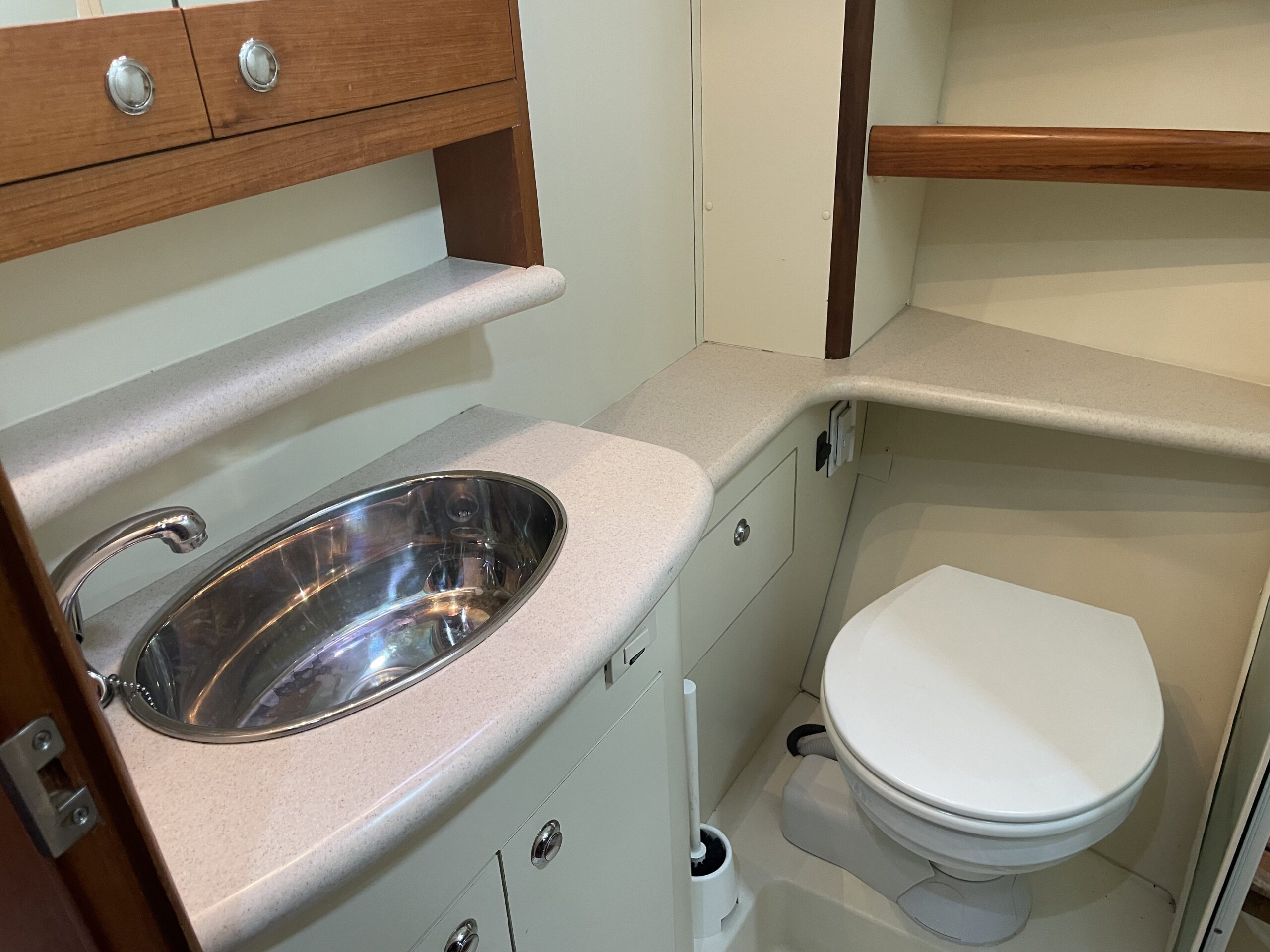 - Private Enclosed Heads – (2) Lewmar 12volt Freshwater – Flush Toilets