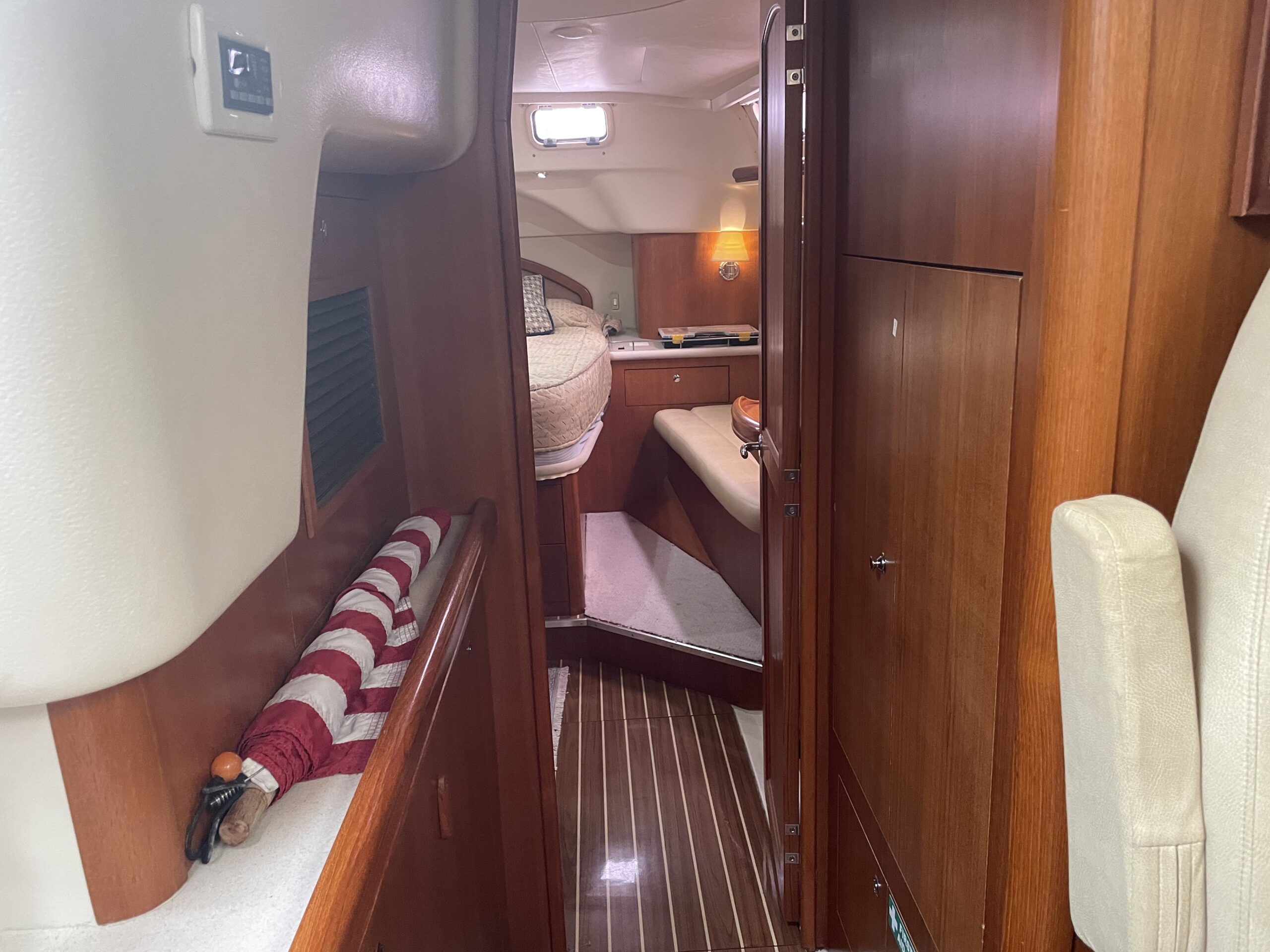 - Lockers / Enclosed Head Compartment to Port, Lockers to Stbd / Salon Area with