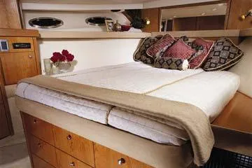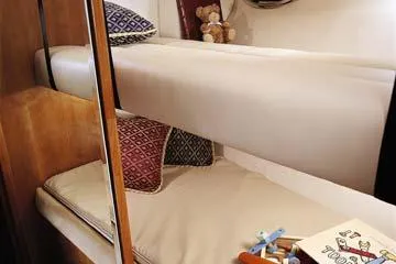 - Third Stateroom: Convertible Settee with Hinged Upper/Lower Bunks (Also Access from Master – Doubles as Dressing Room)