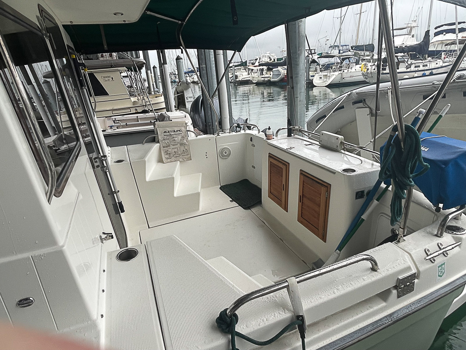 Introducing the remarkable “AURORA,” a 2010 Ranger Tugs R-29, measuring an impressive 35 feet in overall length. This used tugboat boasts a robust fiberglass hull, ensuring durability and stability on the water.