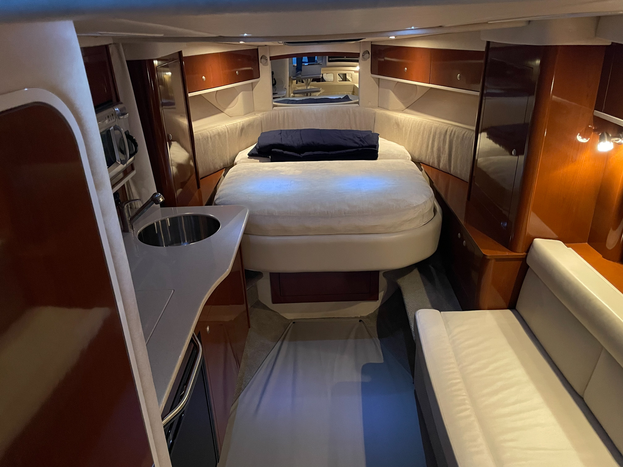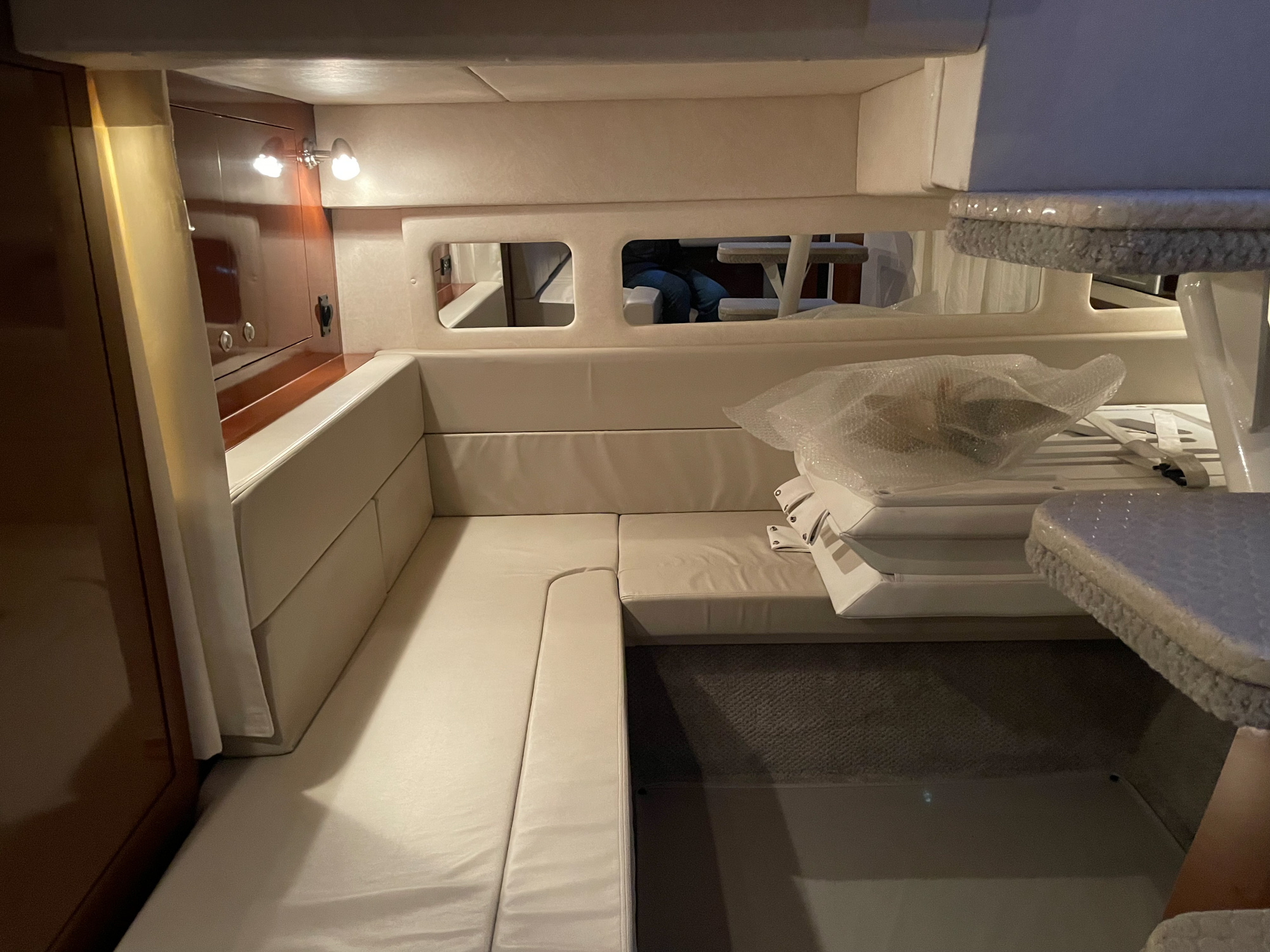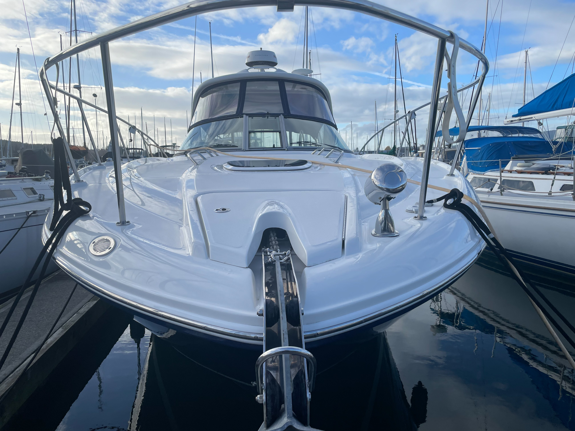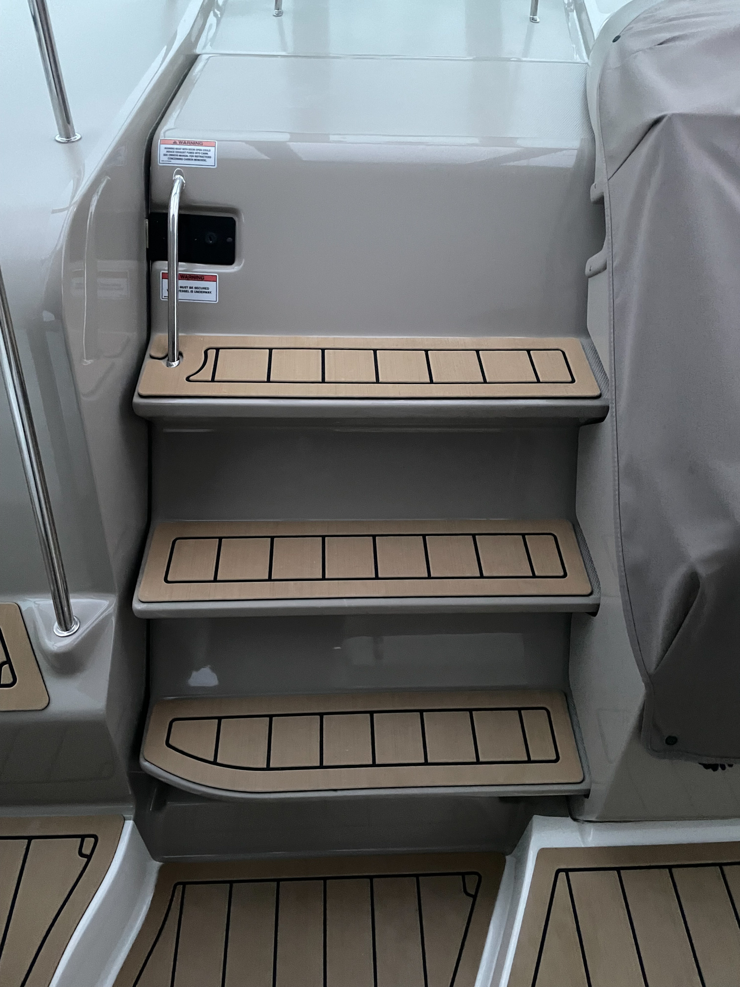 This cruiser features a well-appointed accommodation with two cabin areas and one head, providing comfort for overnight trips. An electric windlass adds convenience to anchoring, while the stylish design and thoughtful layout make it an ideal choice for both relaxation and adventure.