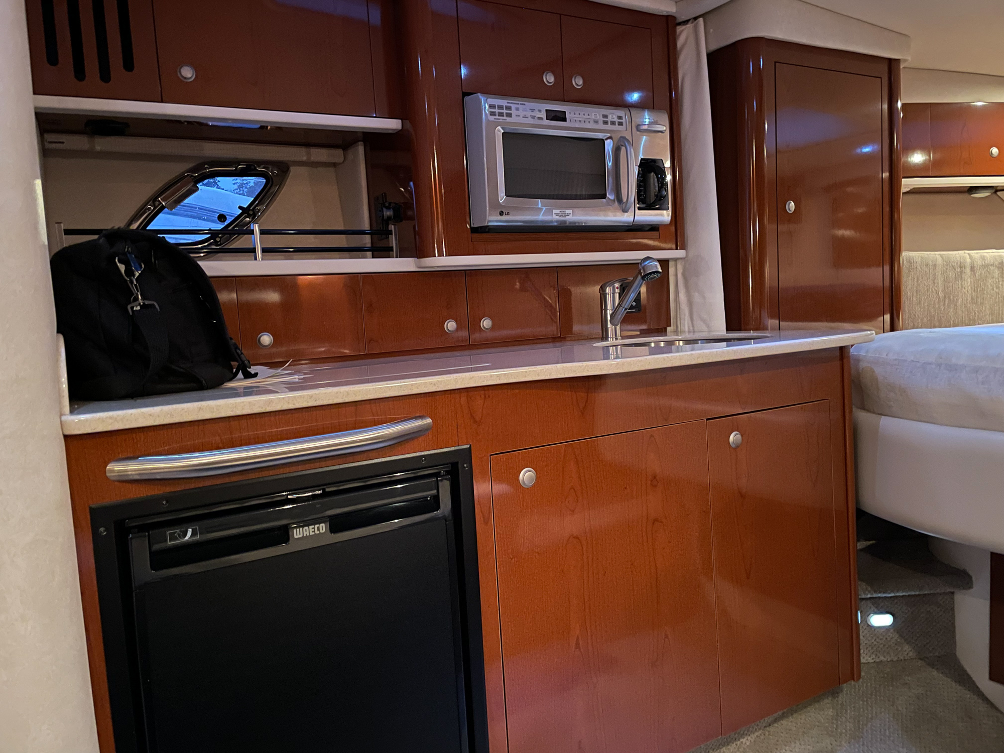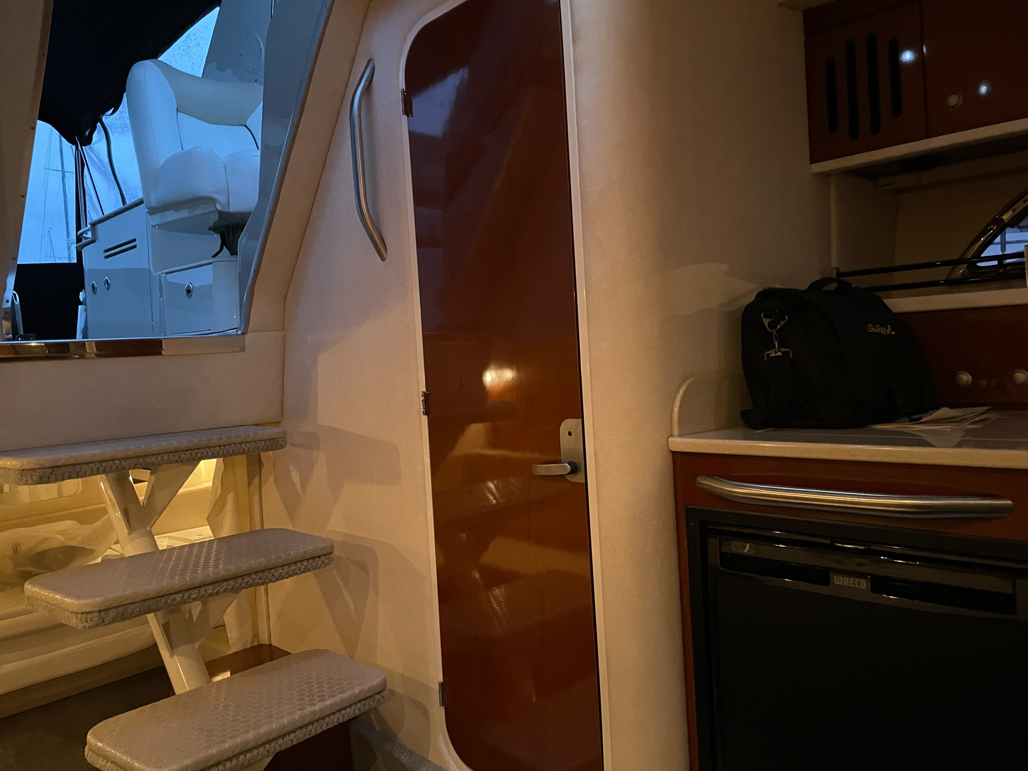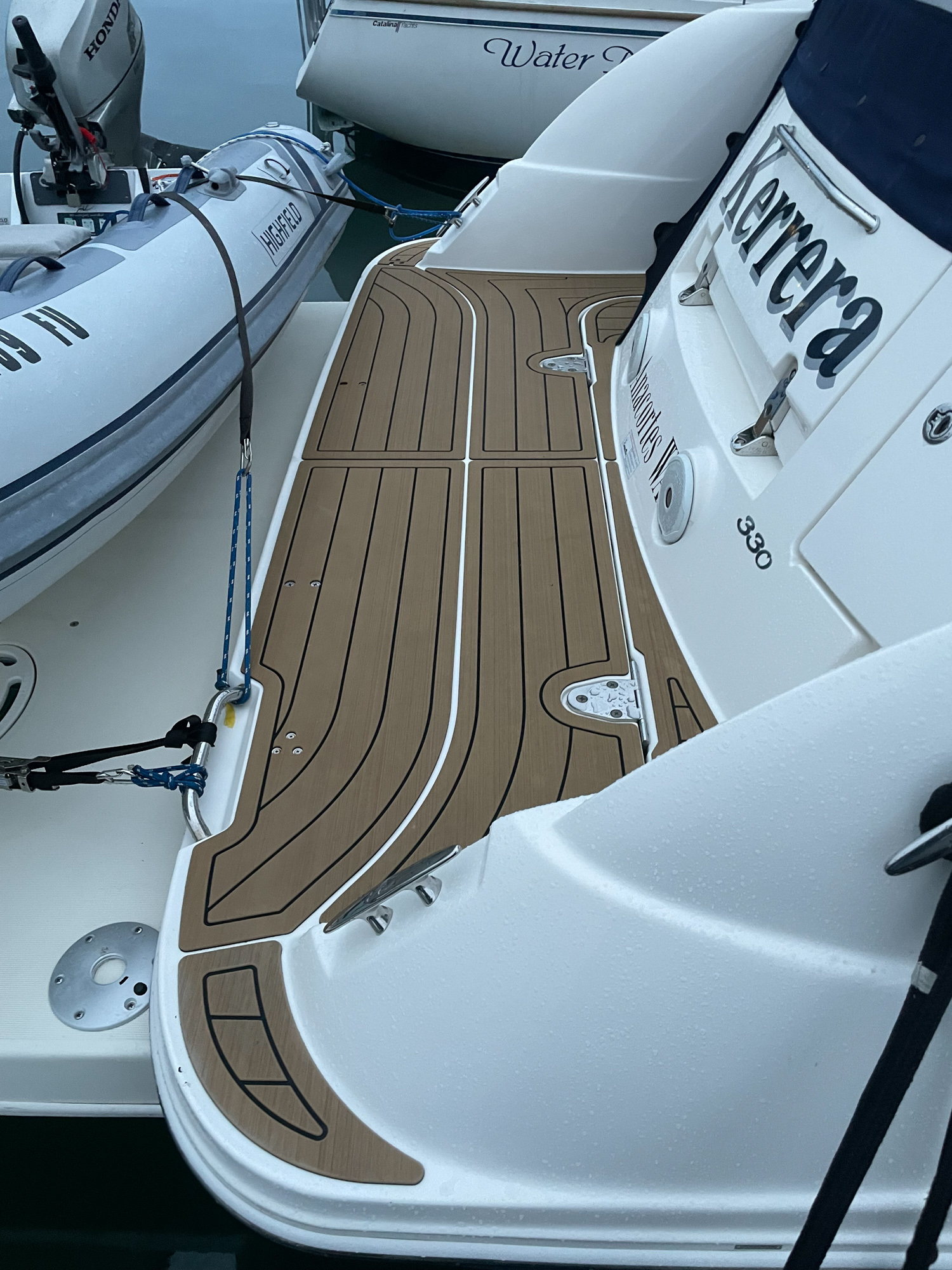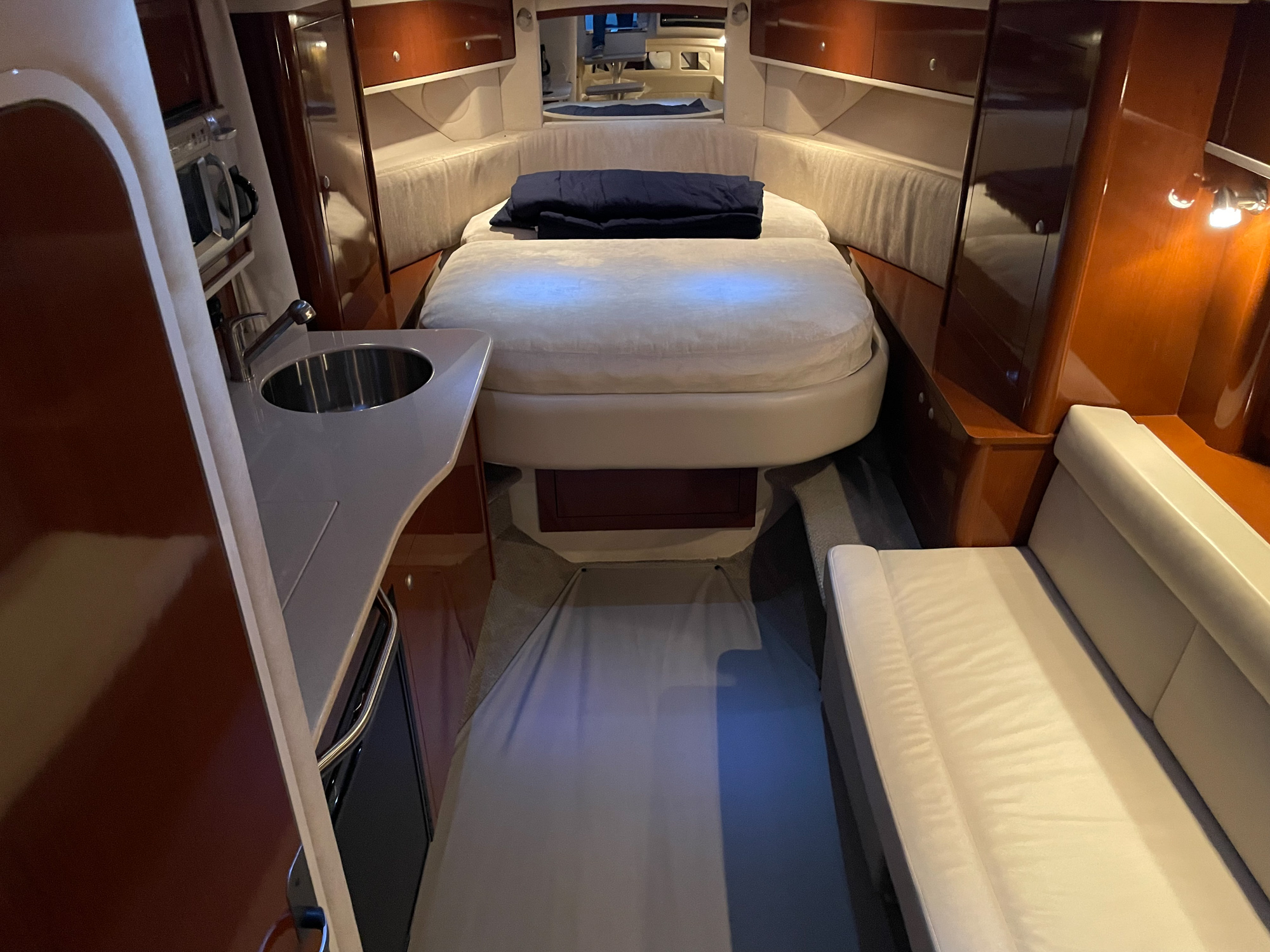 This cruiser features a well-appointed accommodation with two cabin areas and one head, providing comfort for overnight trips. An electric windlass adds convenience to anchoring, while the stylish design and thoughtful layout make it an ideal choice for both relaxation and adventure.