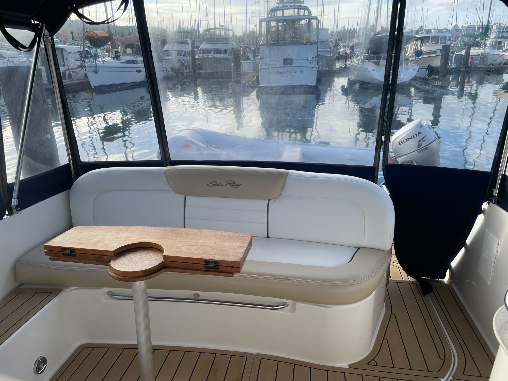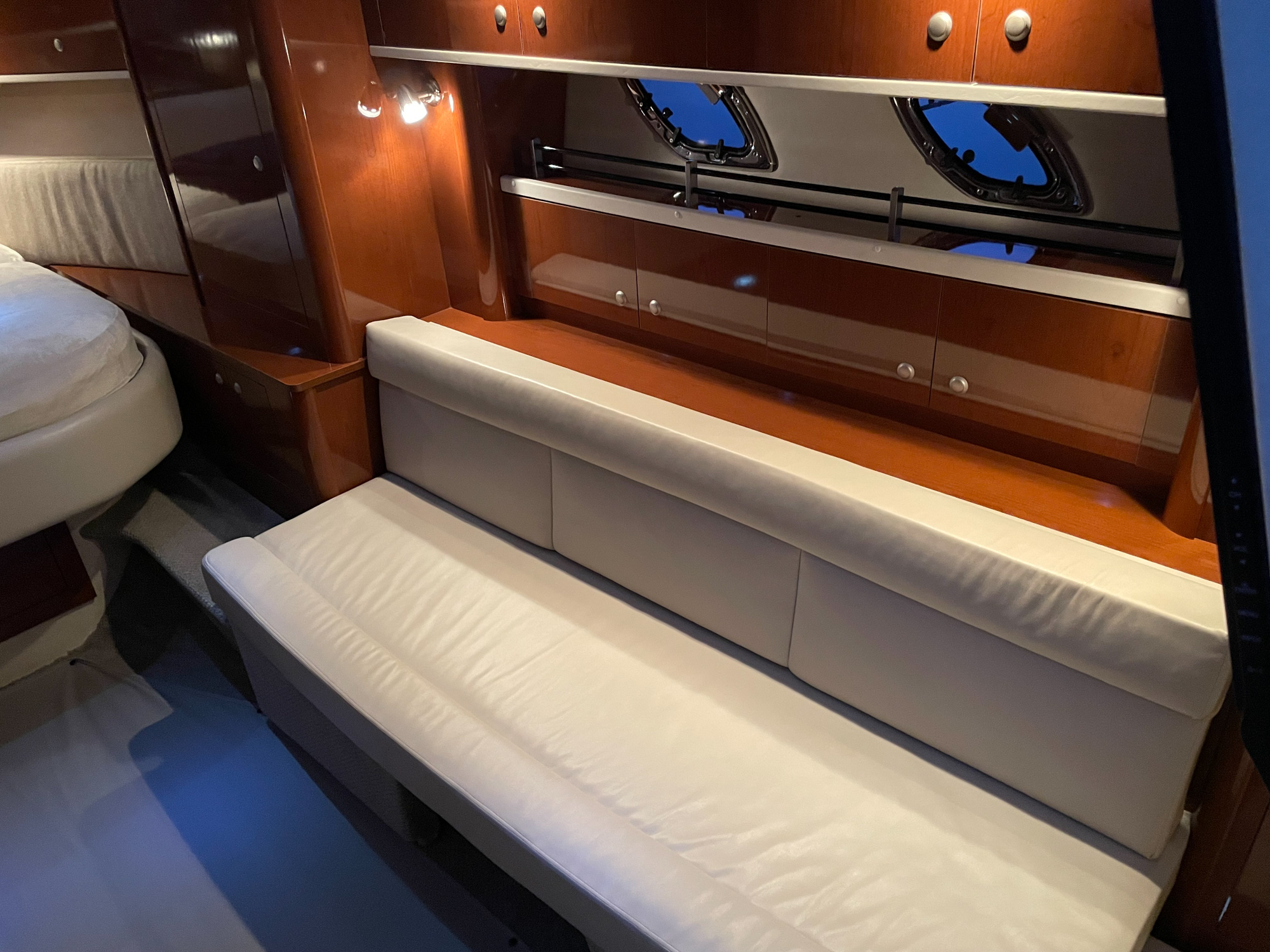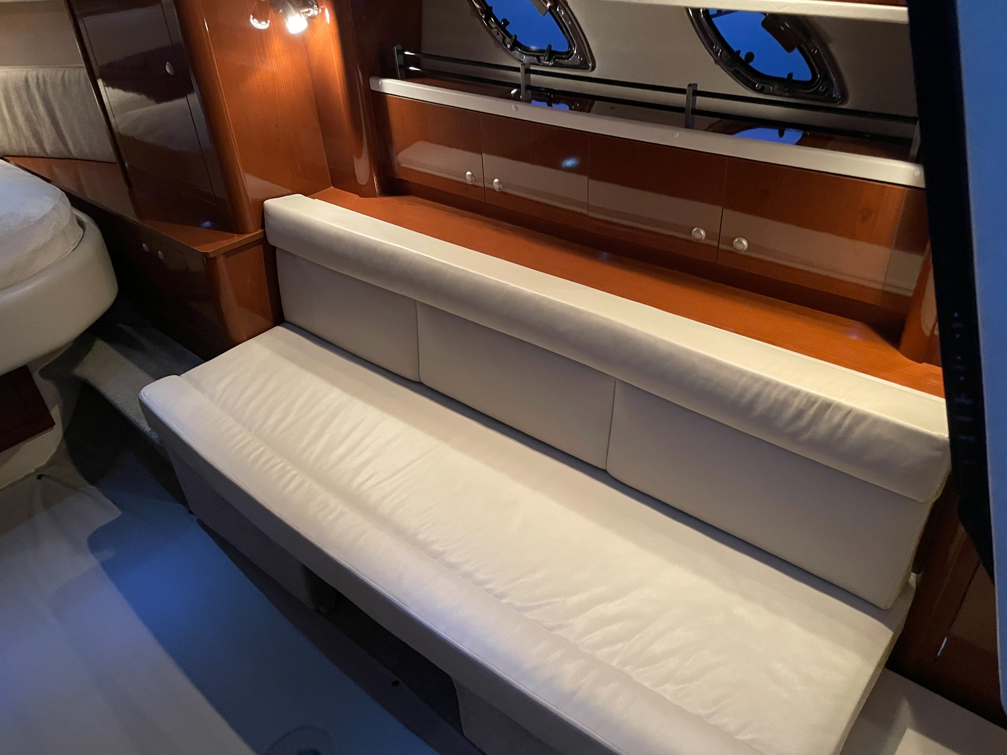 - Salon: Starboard Ultra-Leather settee with dining table (stows under forward berth)