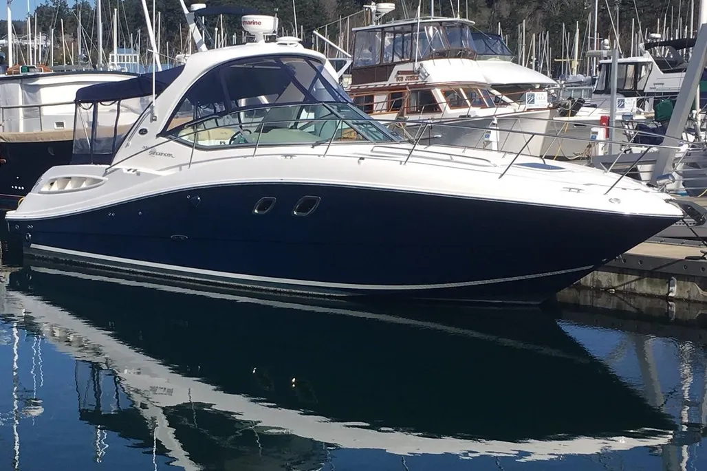 Immaculate, beautiful Blue 2008 Sea Ray 330 Sundancer with substantial upgrades and enhancements including custom swim platform extension is ready to delight you, your family and friends.