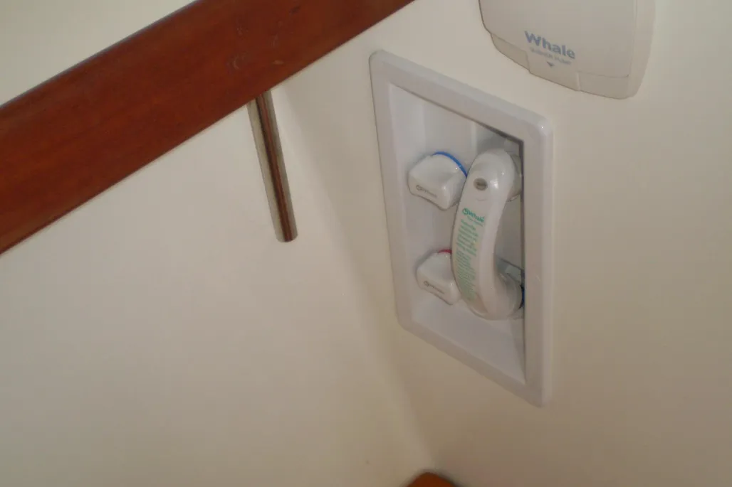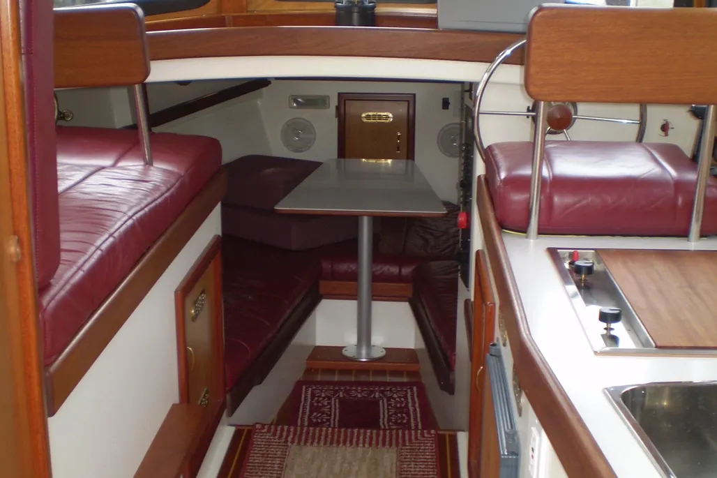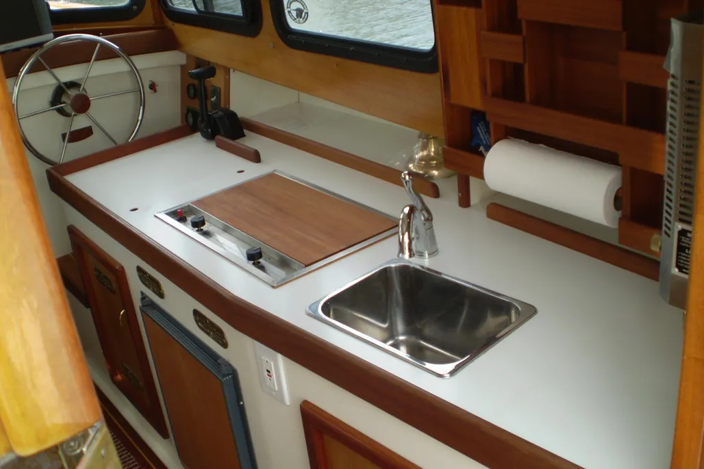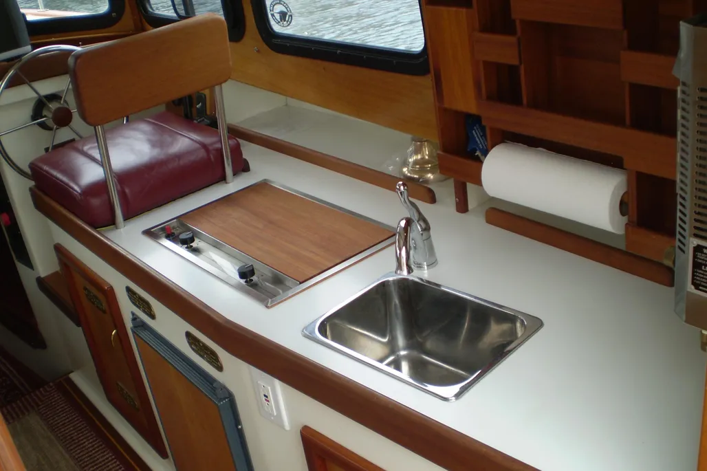 - Hot Water: 6-Gallon Stainless Tank (110V or Engine Heat – under Salon Sofa)