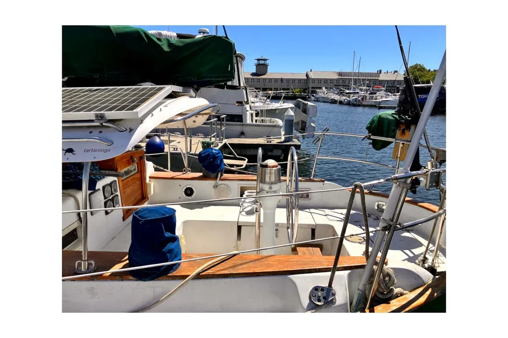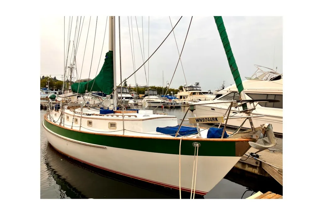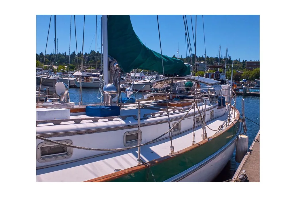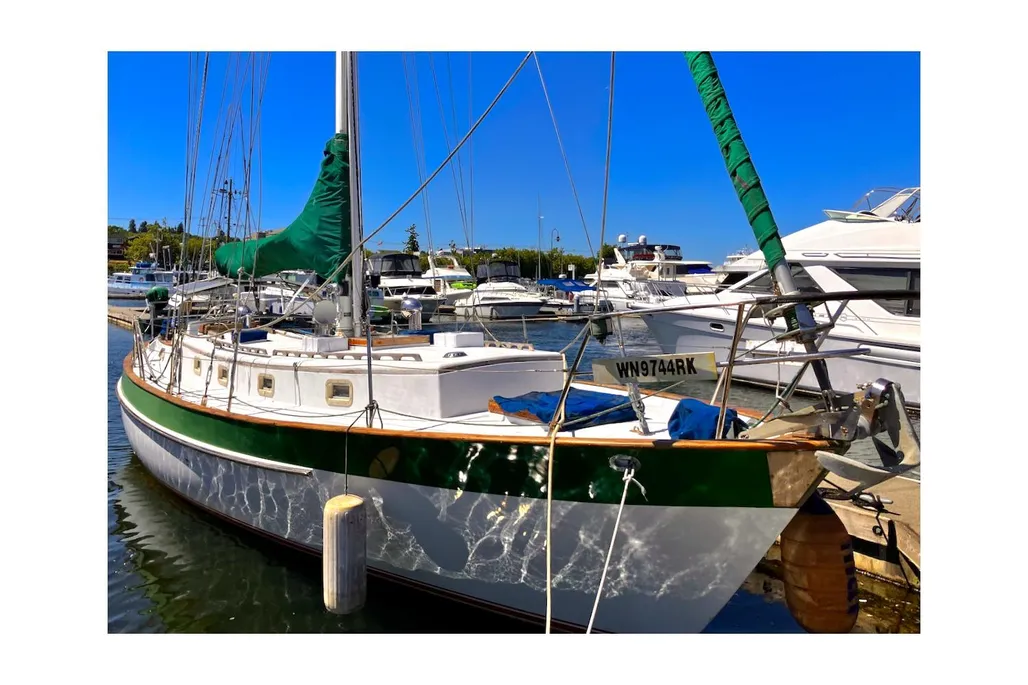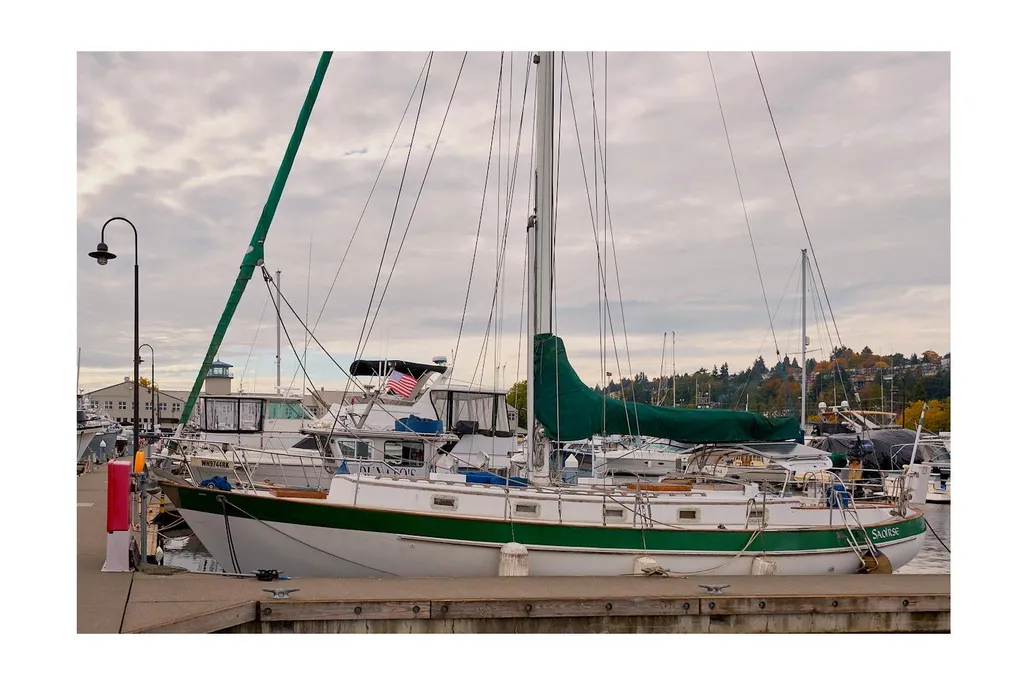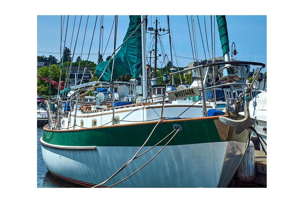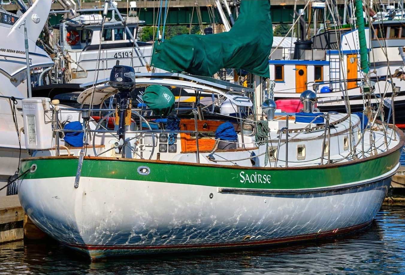 S/V Saoirse is a classic Valiant 40, Bob Perry’s most famous cruising design, now available in Fishermans Terminal, Seattle. She’s hull #250, the first one without the fire retardant resin and Rich Worstell’s personal boat, built in Bellingham, before he moved the company to Texas.and began building the boats on Lake Texoma. Beta 43HP Diesel, Aluminum single-spreader mast, Dyform compact wire rigged. Hasse Sails, Tartarooga hard dodger, four Real Dorades, ten opening portlights, 3 overhead opening hatches. Saoirse like all Valiant 40s, was designed for the ocean; with a low-windage profile, snug cockpit, ready handholds and comfortable motion. They don’t make boats like this anymore, so buy her before someone else gets a great deal on this fine local Valiant 40.