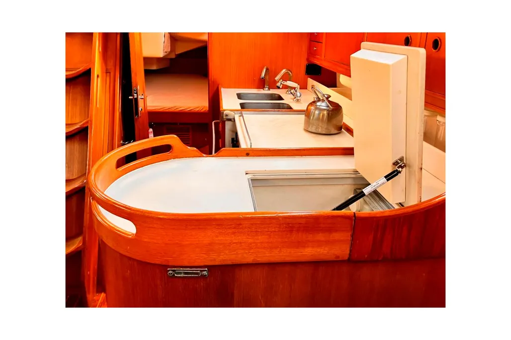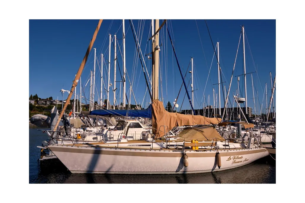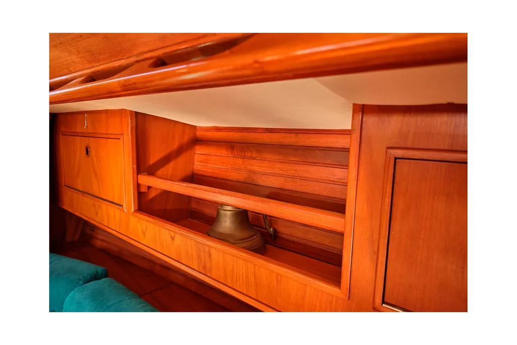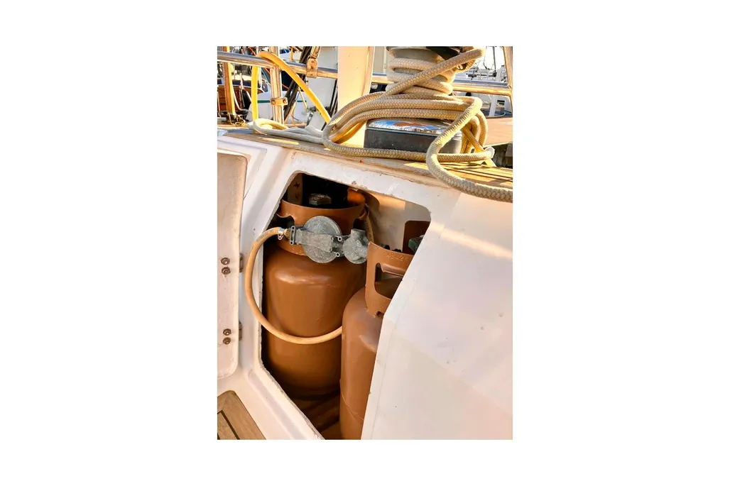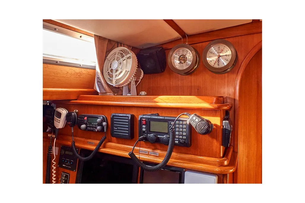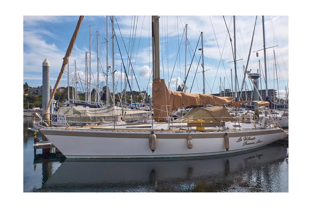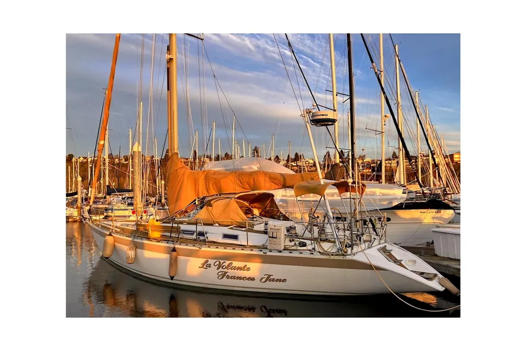 Cruised by an experienced sailor, this fine boat has “Hasse” Port Townsend sails, including a beautiful gold asymmetric spinnaker, with a double-spreader aluminum mast w/ rod rigging. The diesel is a clean Beta 50 with wonderful access, Balmar alternator, powering a 20″ 3-blade MaxProp. With Mexico experience, of course there’s shade protection and air conditioning. Check out the very livable galley, gracious salon with impressive storage and all three cabins: V-berth, crew cabin, and aft cabin w/ head. Known for their seaworthiness and strong construction, Wauquiez’s sailboats consistently deliver swift-sailing, maneuverable designs, and hold their value. Don’t miss this one! If you are seriously looking for a great offshore sailboat, La Volante Frances Jane might be your ticket. . .