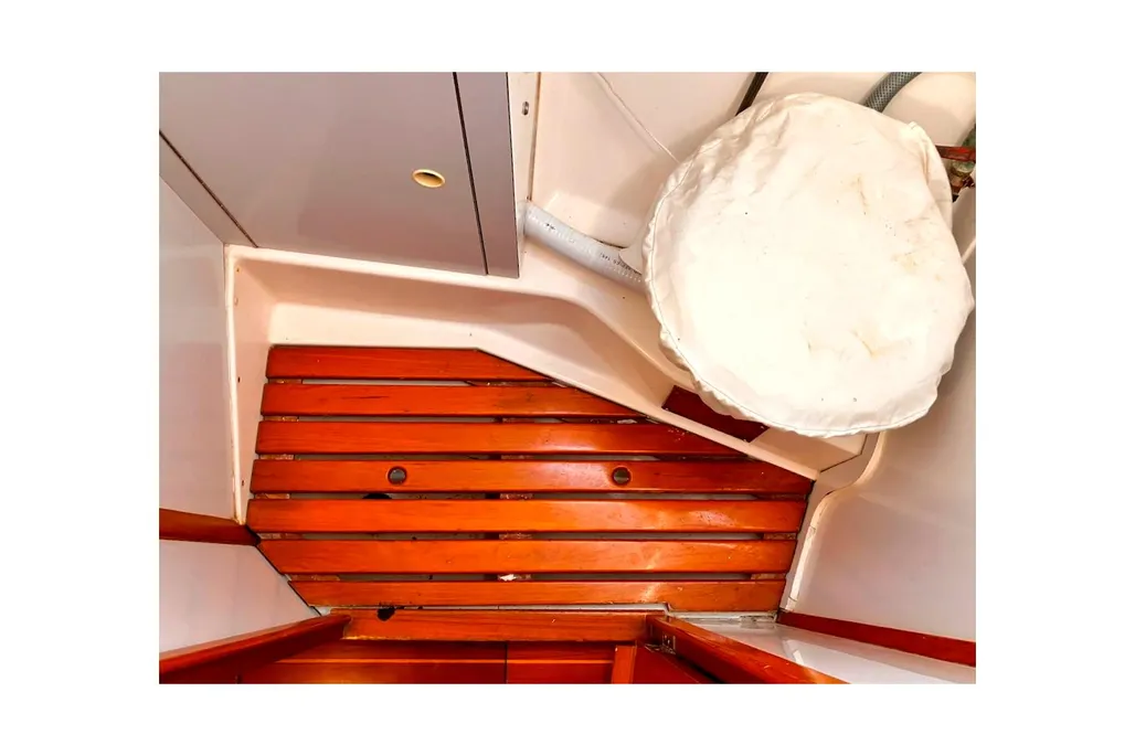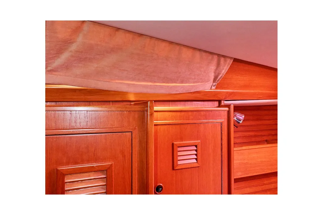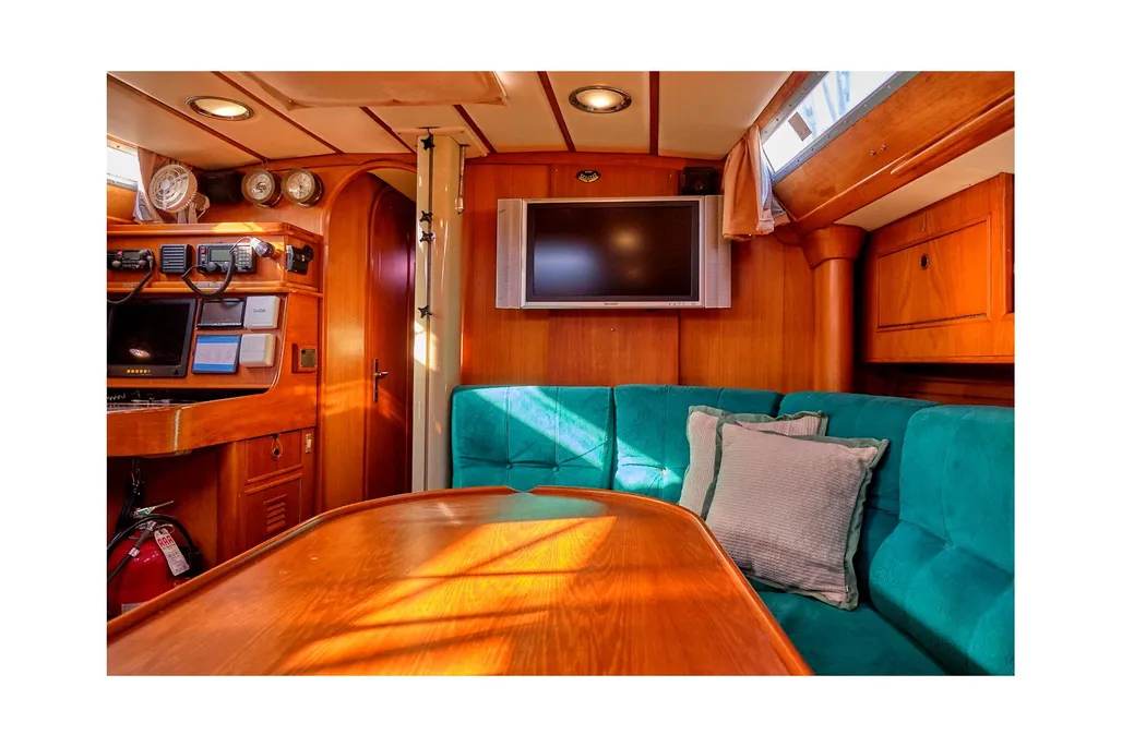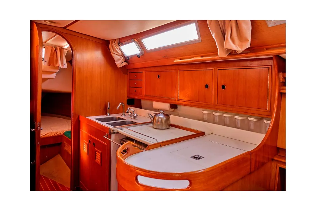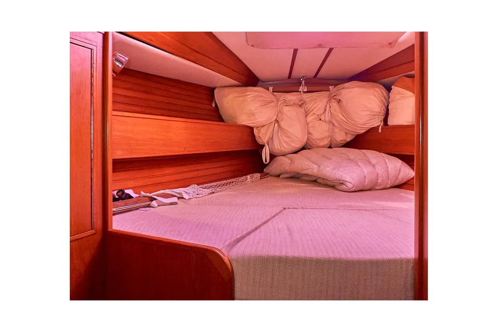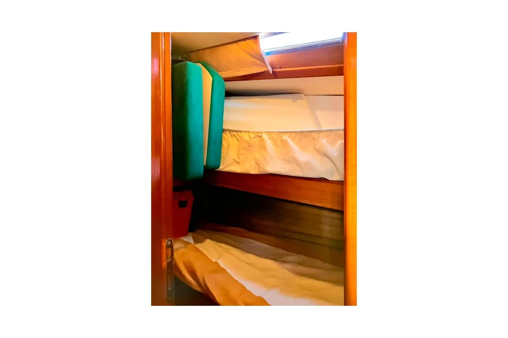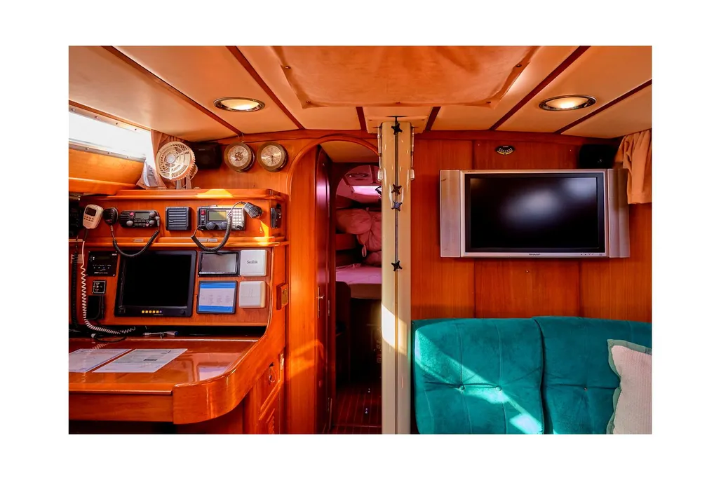 Cruised by an experienced sailor, this fine boat has “Hasse” Port Townsend sails, including a beautiful gold asymmetric spinnaker, with a double-spreader aluminum mast w/ rod rigging. The diesel is a clean Beta 50 with wonderful access, Balmar alternator, powering a 20″ 3-blade MaxProp. With Mexico experience, of course there’s shade protection and air conditioning. Check out the very livable galley, gracious salon with impressive storage and all three cabins: V-berth, crew cabin, and aft cabin w/ head. Known for their seaworthiness and strong construction, Wauquiez’s sailboats consistently deliver swift-sailing, maneuverable designs, and hold their value. Don’t miss this one! If you are seriously looking for a great offshore sailboat, La Volante Frances Jane might be your ticket. . .