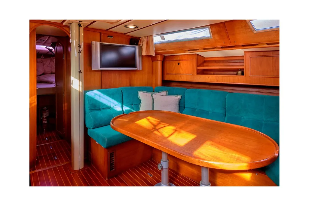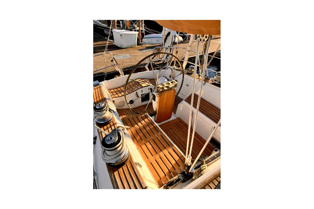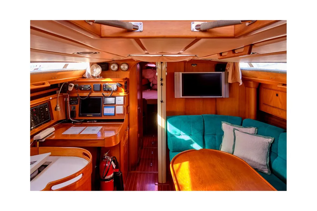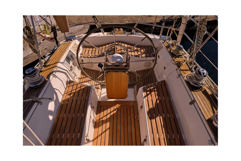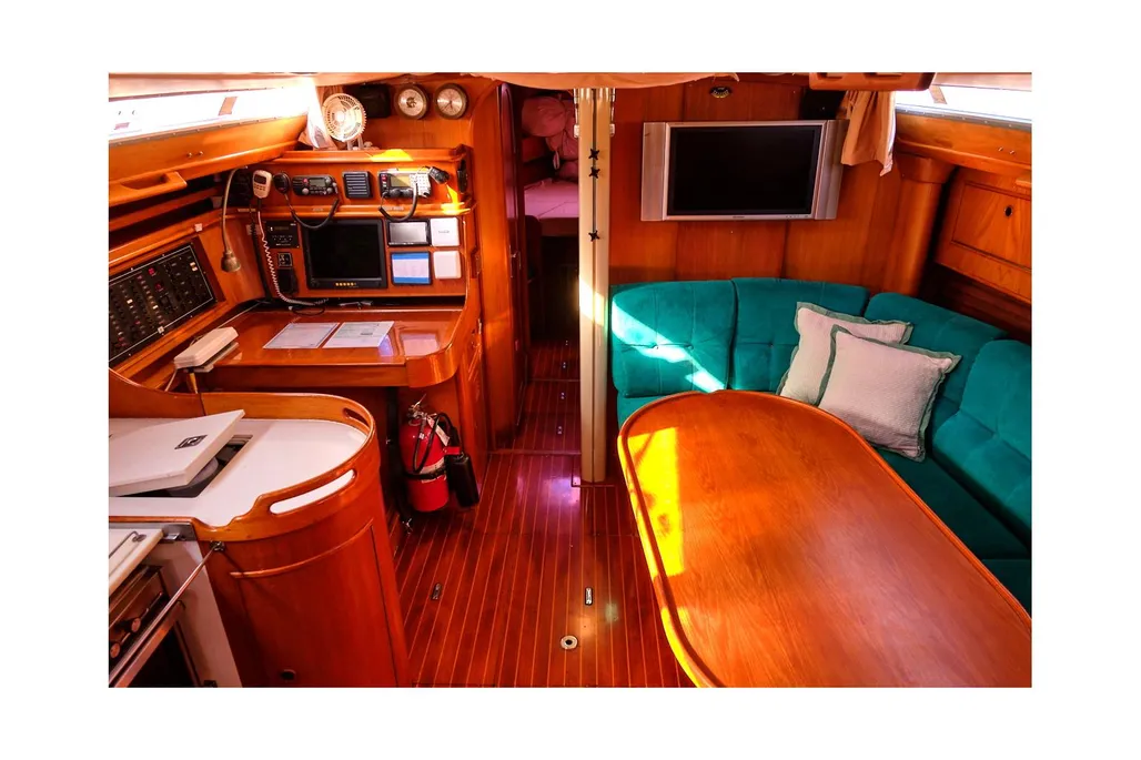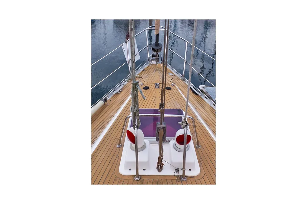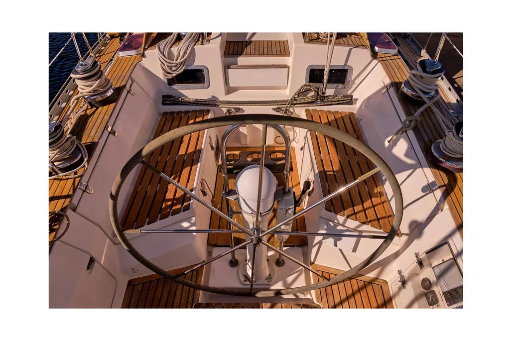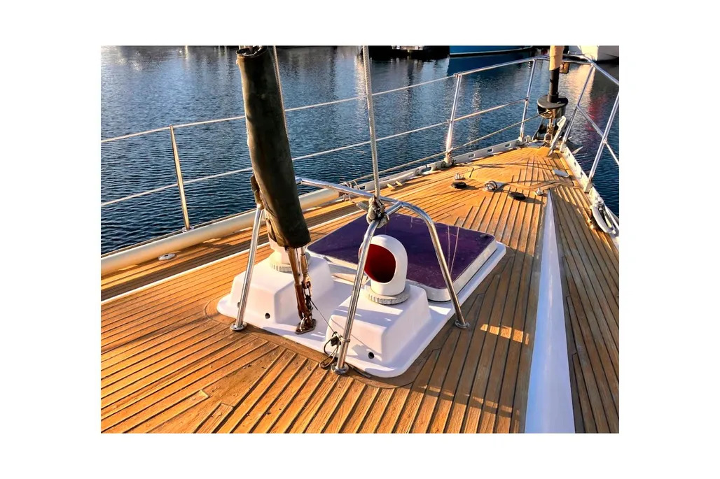Designed by naval architect Ed Dubois and build by Henri Wauquiez (FRA) from 1990 to 1993, this 1992 Centurion 45 was bought by the second owner out of a brief company charter – thus the rare brown strip.
