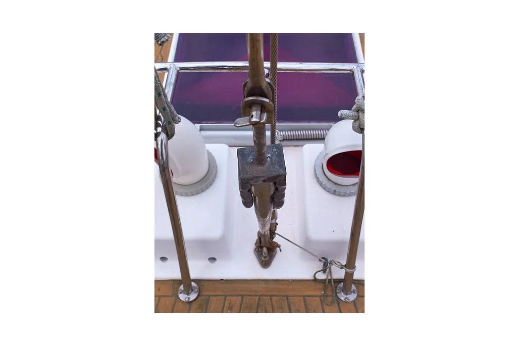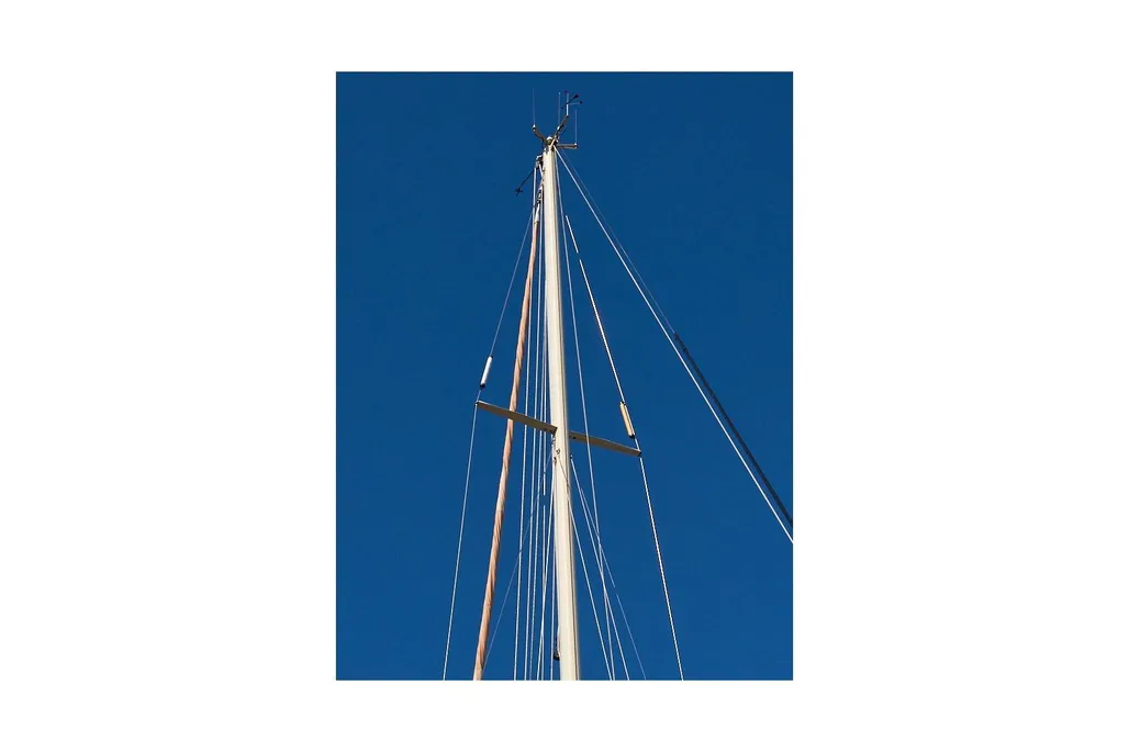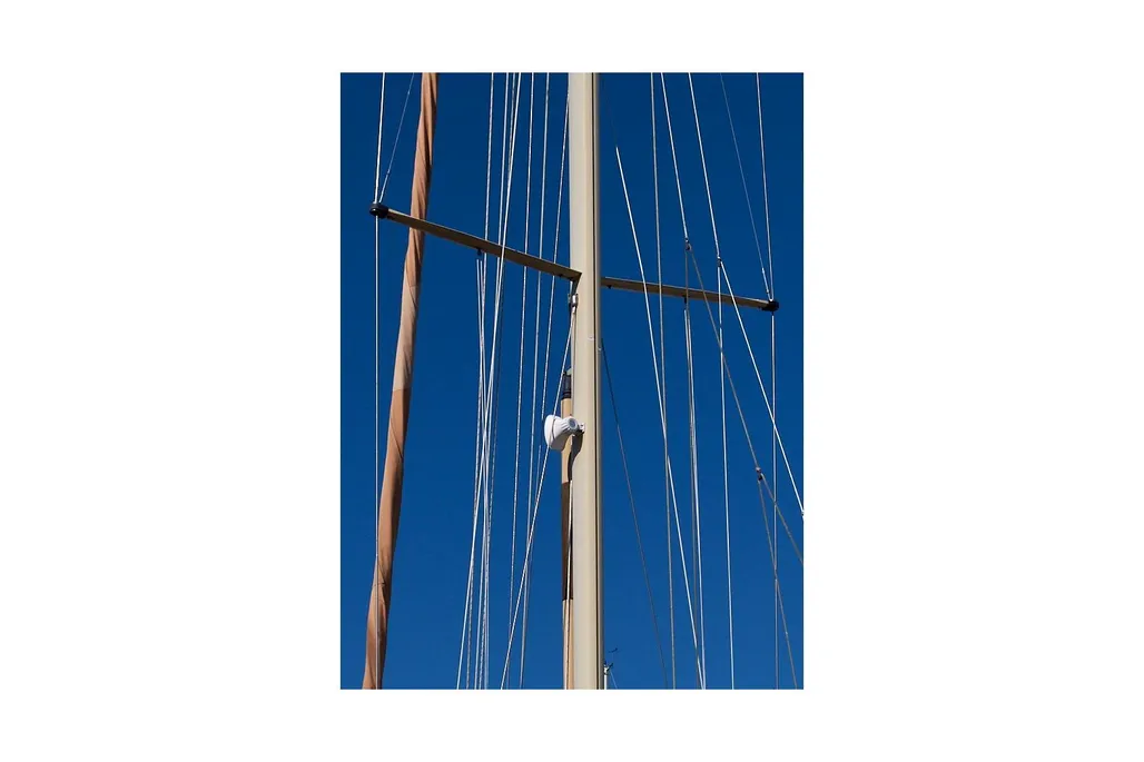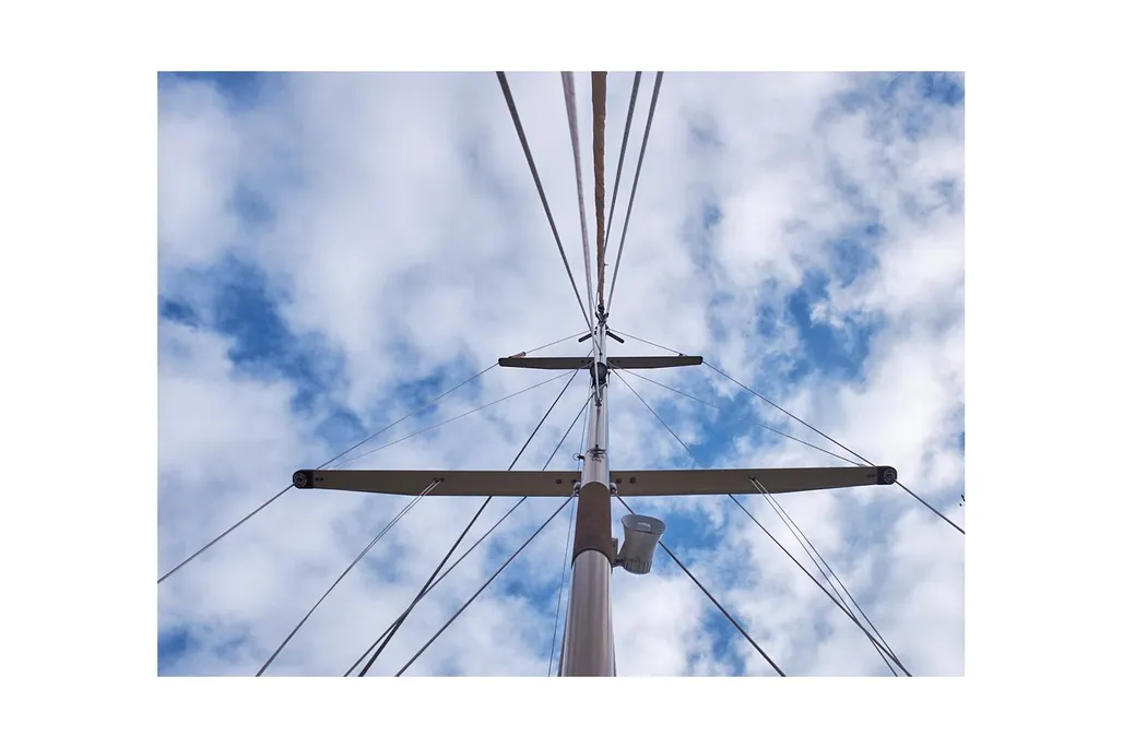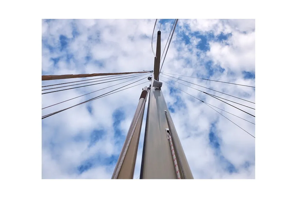 - Double-spreader, keel-stepped painted Sparcraft aluminum mast