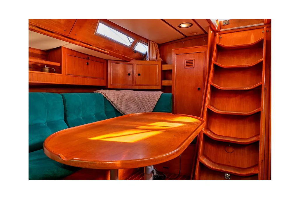 A popular model among cruisers looking for performance, the Centurion designs; 42, 45, 47 and 49 models were all fast racer-cruisers. They were built in the Wauquiez (Chantier) or boatyard in NE France, Neuville en Ferrain, near the Belgium border. These strong and safe, seaworthy ocean boats were sloop-rigged, with a fin keel designs long before Beneteau bought Wauquiez. Ed Dubois extended his 42 hull to make the Centurion 45, keeping the successful 3-cabin, 2-head design, while adding a “Mediterranean stern entrance” for a bit more waterline and speed.